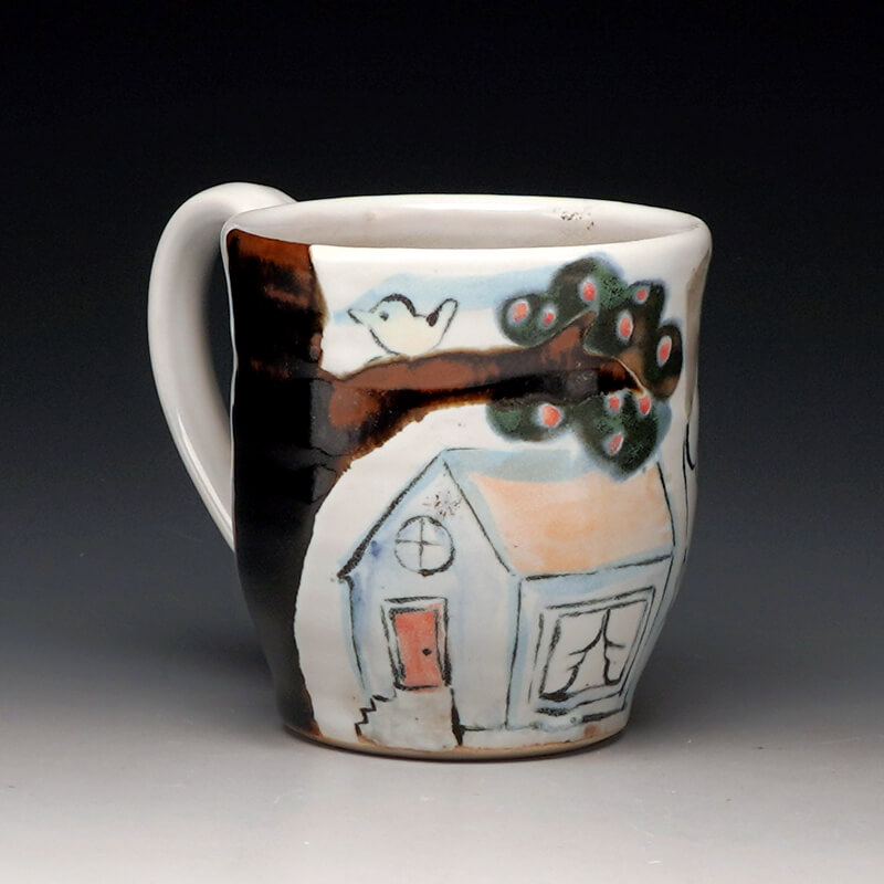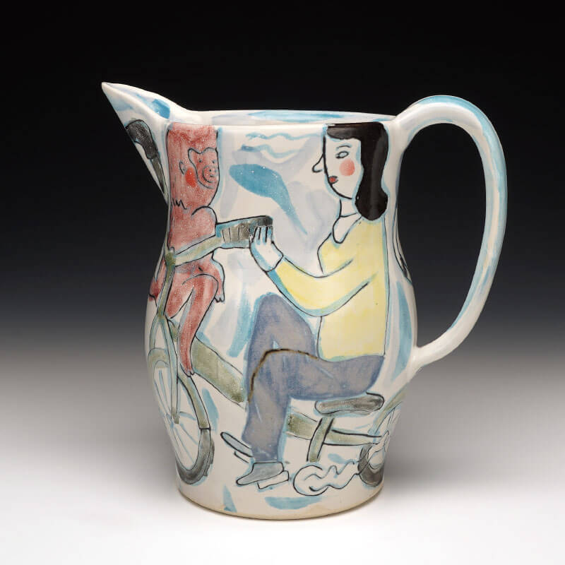 My pots provide consolation and hope. They promote a playful, tender approach to living. On the surface of utilitarian objects such as teapots, watering cans and mugs, my images take their natural place in our domestic lives.