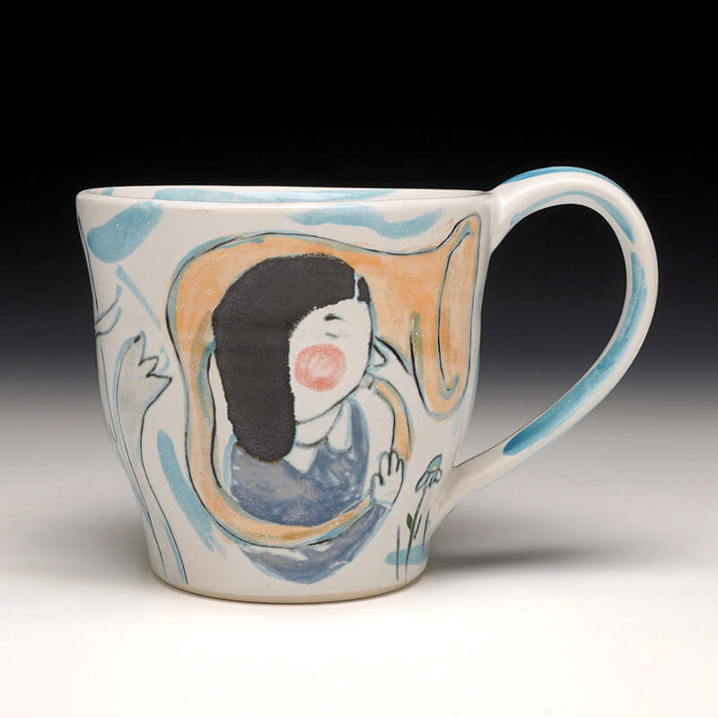 The child-like images of Donna Flanery’s pottery offer adults support and encouragement in a world full of serious problems. The cartoon style engages the use of humor, replacing grimness with lightness.