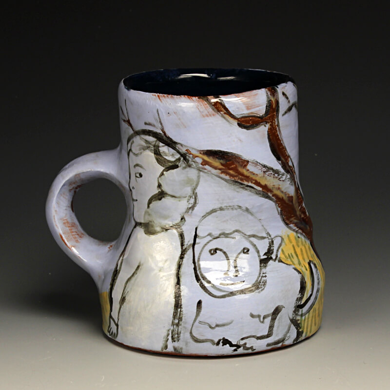 A sequence develops from the use of three dimensional space. Often, two distinct sides create the narrative. Different views reveal new information as the viewer walks around the piece or moves it in their hands. Because both sides are never viewed in the same moment, both space and time are needed in the telling. My pots are themselves stories, as well as referring to the narrative forms of children’s books and comic books.