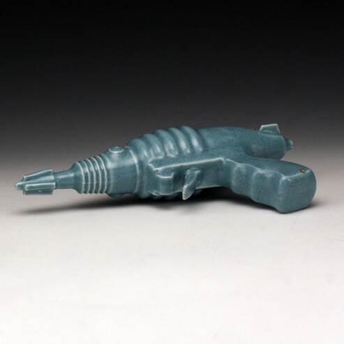 The objects I produce are results of experiments through which I am investigating ceramic materials. I enjoy working in the multiple because it provides me with an overabundant amount of objects to arrange and look at. I am interested in the variation from one object to the next. It is not only the objects I make, but the ones I leave behind and the residue that I am interested in: the marks left on the shelf; the way the water contains so much sulfur it stains my molds yellow. The materials I chose to use are base iron, cobalt, and calcium. They are not blends of elements built up to create compounds; there is a purity to these elements. They are simple, uncontrived building blocks for color and structure. I am interested in a standard and then the deviation from that standard by way of material melting.