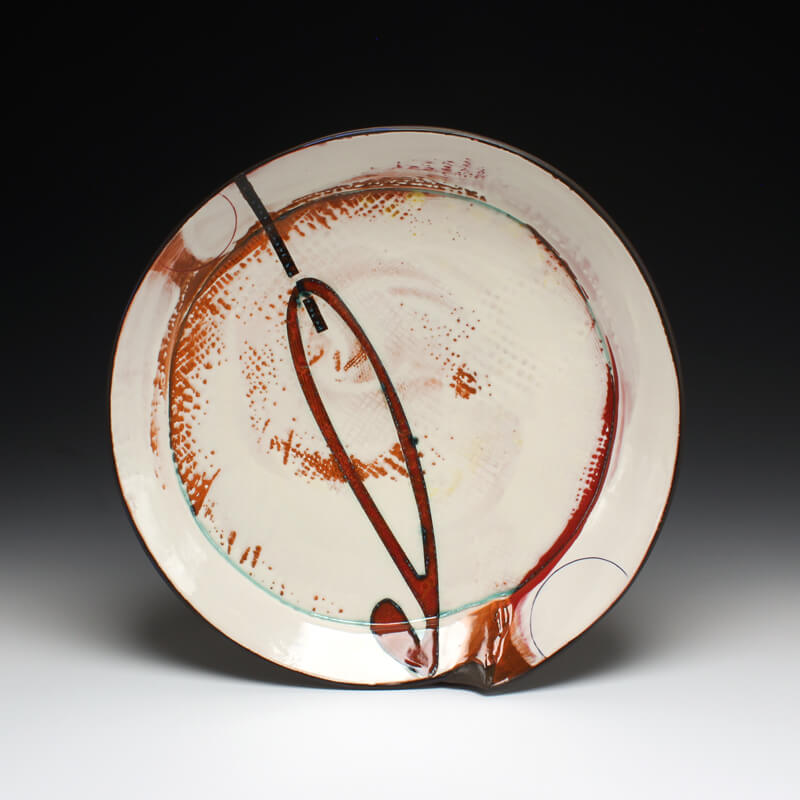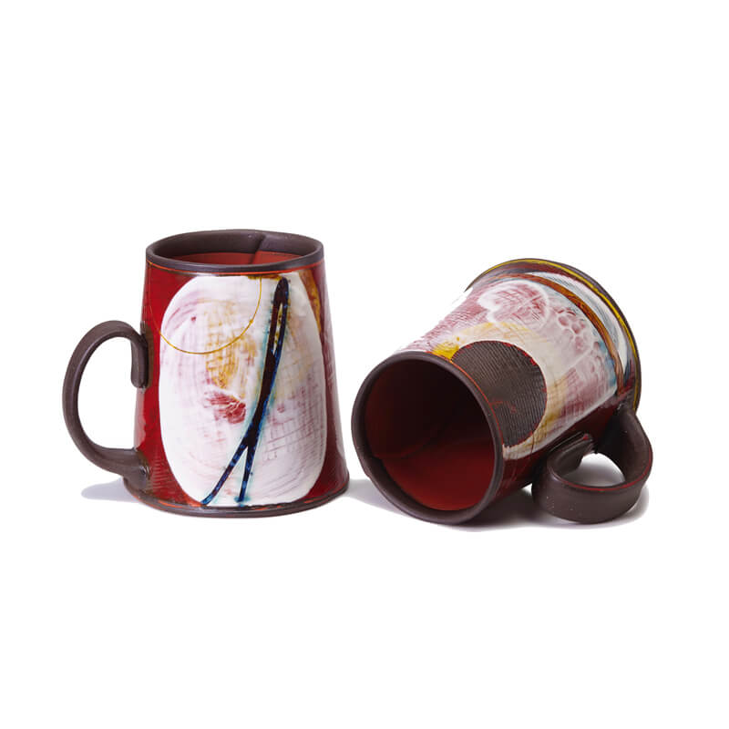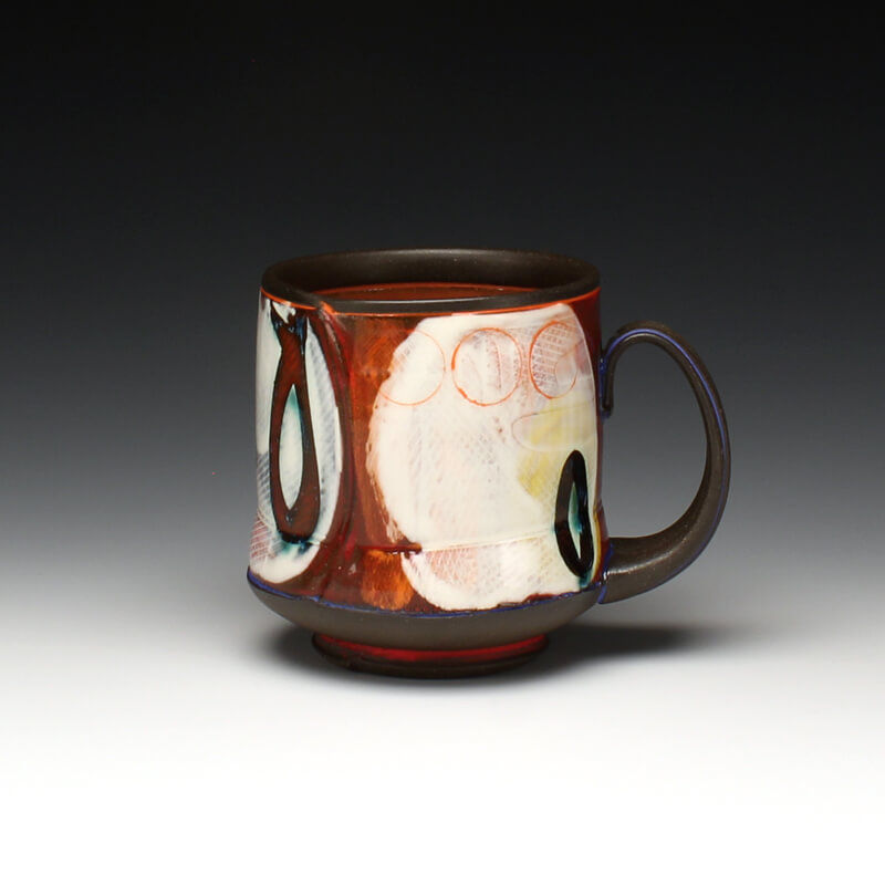 My work is a constant discussion on how things fit together and how they do not. In particular, I am interested in points of transition: the space where orange becomes red, the place where glaze meets bare clay, the edge of a handle and the end of the pot. In my process, I continually seek out and create opportunities for these moments to occur: leaving a seam visible in a hand-built cup, cutting a soft line in the rim of a bowl, or negotiating the space between white slip and raw clay. As a maker, I am interested in how these moments record my decisions and become physical signposts left for a future user. These traces of intent and action say: I was here, please bear witness.