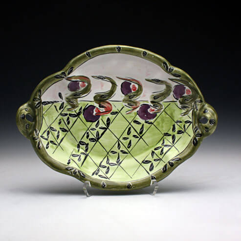 She has taught numerous workshops on both thrown and altered forms and majolica decoration at such places as Arrowmont School of Arts and Crafts, Penland School of Crafts and many community craft organizations. She enjoys both making and teaching.