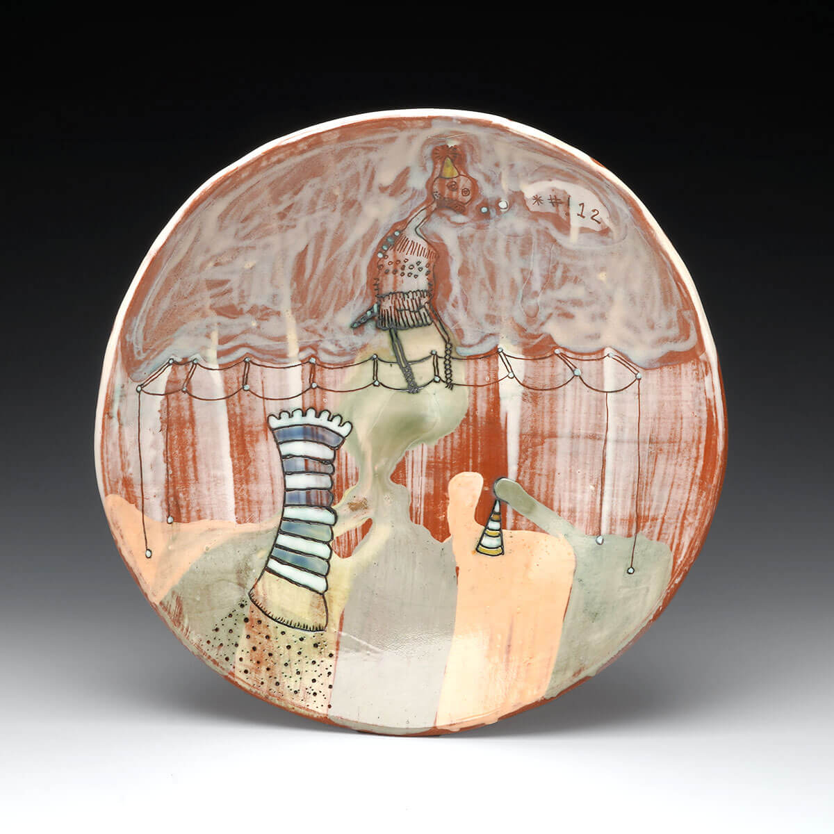 My ceramic wall tablets and vessels offer narrative insight, illustrating both personal and universal stories of the human experience within psychological and natural landscapes. How the layered surfaces coalesce create an impression of a story, a blend of poetic memory reminiscent of ancient Sumerian tablets and contemporary urban brick walls tagged with graffiti.