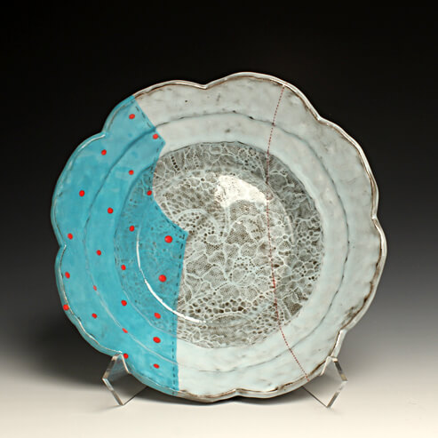 My inspiration comes from many sources.  For me it was a simple tool, my pattern marker.  Then came scraps of laces and zippers.  This is how my current work began.  It is composed of utilitarian pots and objects made for our intimate, domestic settings, namely our home.  Domestic objects, such as vases, are new forms I am exploring. With my work, I explore different shapes and forms as different ways of thinking about and presenting food or flowers in the case of the vase.
