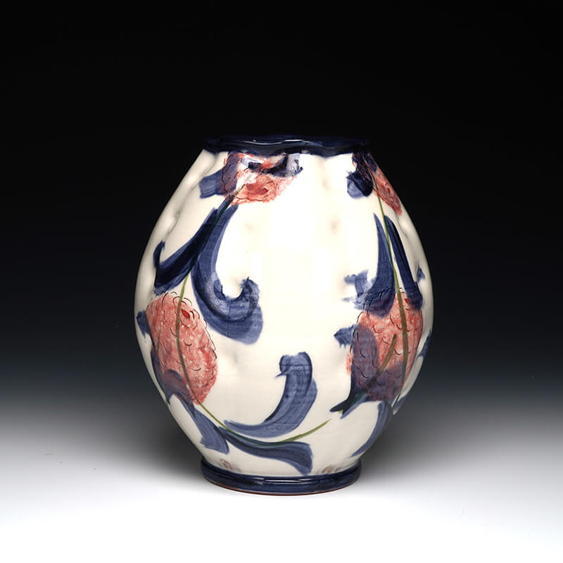After extensive travel in Asia and Europe my research has shifted towards establishing an aesthetic representative of my Appalachain cultural heritage. Earthenware clay is stretched into functional forms that have convex bulges to reference pillows and tufted furniture. This overfilled aesthetic is a visual metaphor for the casual graciousness of southern hospitality.