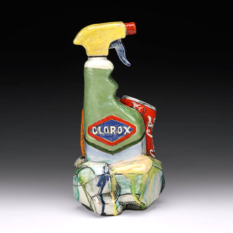My contributions in clay mark time spent considering the visual elements that represent western culture and American-ness. Utilization of the vanitas, the art historic method for representation that imbeds the transience of life, underscoring the temporariness of pleasure and the certainty of death; is deeply important to the underlying intention of what I make and why. Through the various functional and sculptural works, I can work through complex emotions and find peace. I feel most honest when I reference the brands and popular culture of my childhood memory, those previous experiences describe and capture fundamental elements of American culture but also create a tableau of an economic, gender, and regionally specific identity. The advantage of this symbolic language is that I feel safe in asking tough questions to an anonymous audience, the result is a kind of consensus answer that helps me to feel relevant and not alone in my humanity.