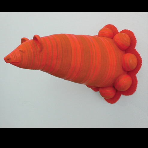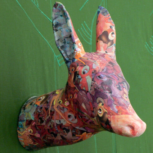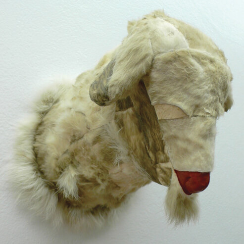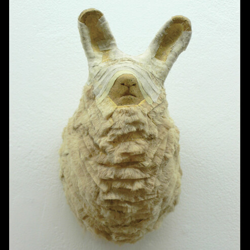 My work consists of hand-built clay and mixed media animal sculptures adorned with non-traditional ceramic surfaces. The composite animals are not individual portraits nor true to an original source. The nonspecific hybrid creatures I create cannot be categorized. I omit or conceal the eyes to silence the animals, to evoke introspection, and to further enhance their ambiguity. The animals function as stand-ins for people to examine the human condition. They are representations of emotional states not fixed to time, place, or specific experiences. Expressions of distress and dejection exist side-by-side with qualities of being well loved and having lived well. The sculptures exist on the lines between joy and sorrow, pride and humiliation, fear and security, hope and despair, and love and neglect.
