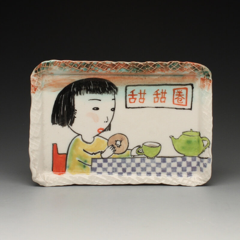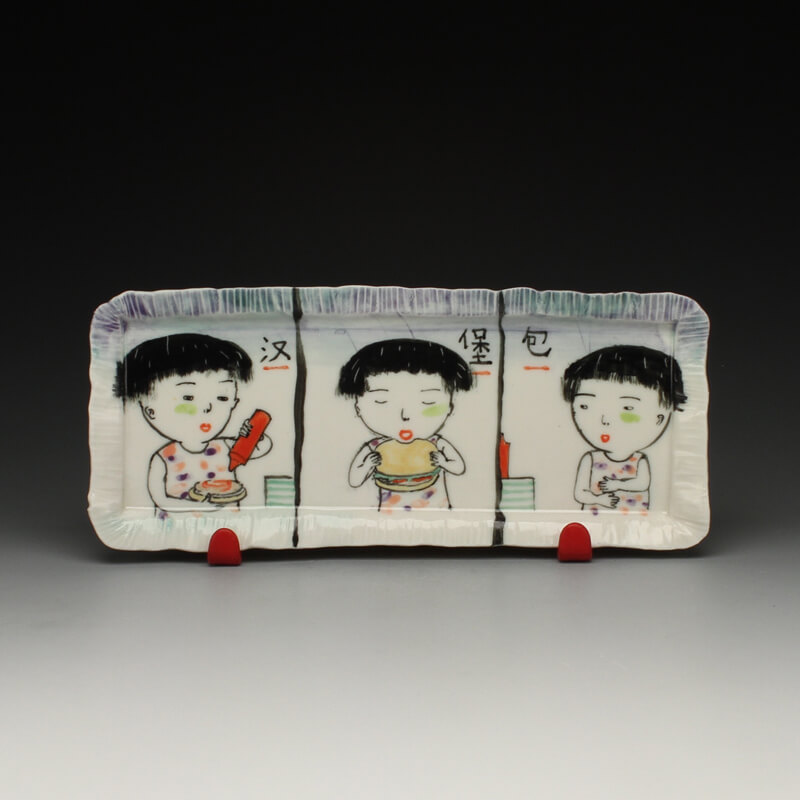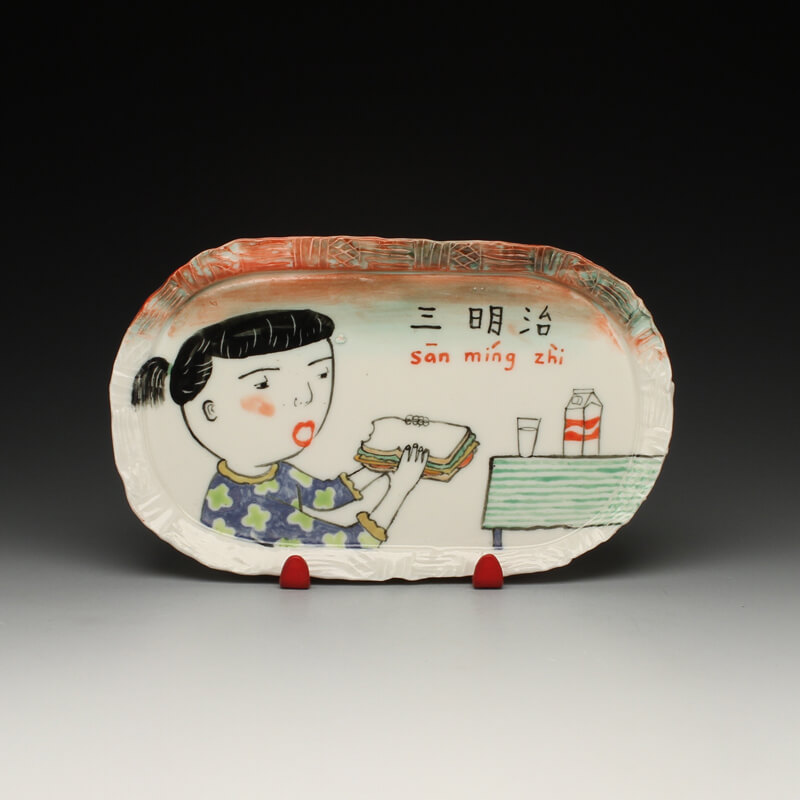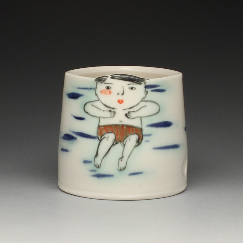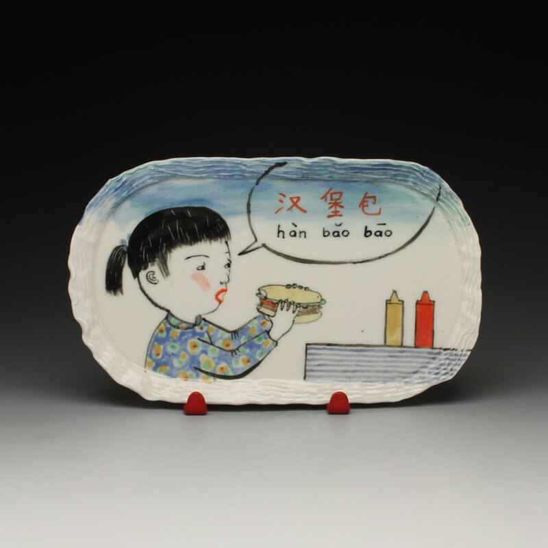 My work in ceramics and mixed media collage revolves primarily around issues of family and my Asian-American background. Cultural marginality and blending, tradition vs. Westernization, language and translation are key elements in my work. Since the birth of my son in 1987, I have been drawing inspiration from major events in my family’s history, the day-to- day challenges of parenting, and my own childhood memories of being raised in a minority culture in the United States. I use the image of a child as a symbol of innocence, potential and vulnerability.