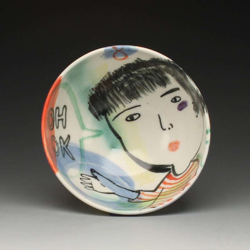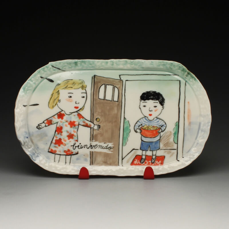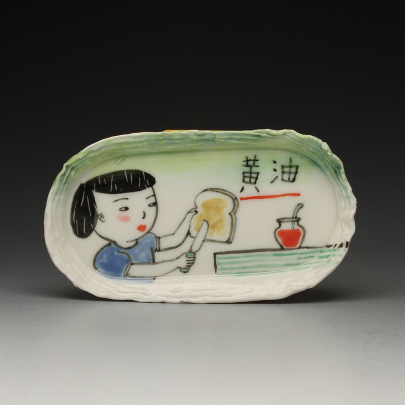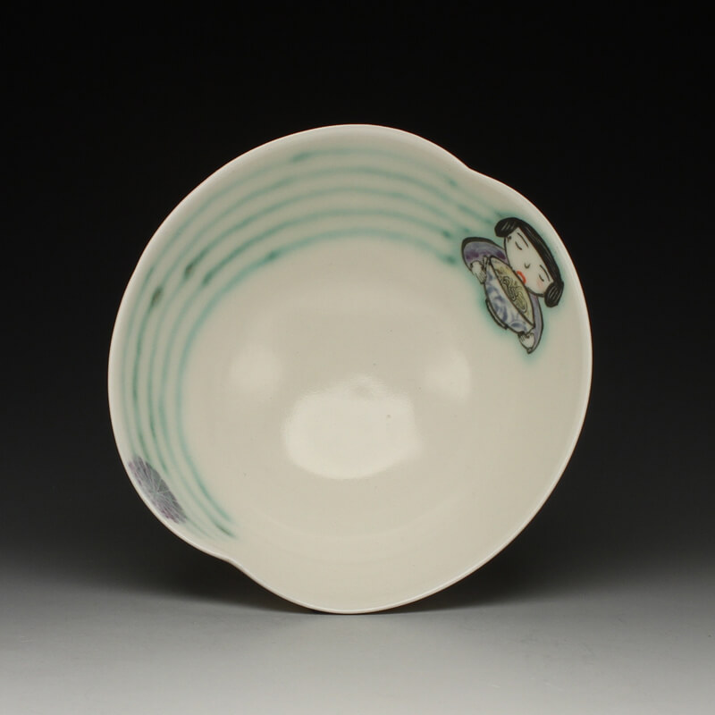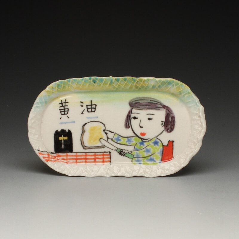 My work in ceramics and mixed media collage revolves primarily around issues of family and my Asian-American background. Cultural marginality and blending, tradition vs. Westernization, language and translation are key elements in my work. Since the birth of my son in 1987, I have been drawing inspiration from major events in my family’s history, the day-to- day challenges of parenting, and my own childhood memories of being raised in a minority culture in the United States. I use the image of a child as a symbol of innocence, potential and vulnerability.
