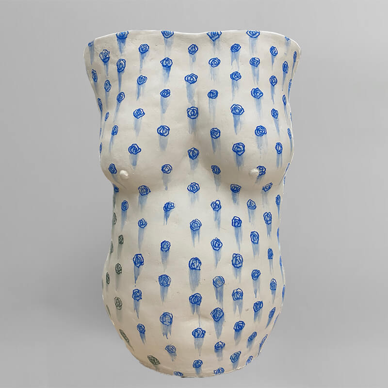 My work results from a push and pull of digging into my own trauma, while being uncertain of how much to reveal. I reflect my innermost emotions and personal experiences through form and imagery. As expected, my life goes through various ups and downs, so the subject matter of my work frequently changes. I hope that the oscillating themes are able to resonate with viewers. I want to mimic that feeling of discovering that someone else went through the same thing as you and that, finally, someone knows how you feel. When someone views my sculptures or holds a mug that I made, I hope they have feelings of joy, curiosity, and empathy.