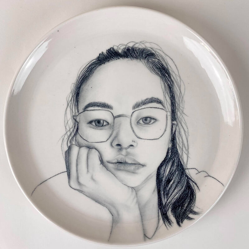 Ceramics is a unique art form where I can create my own canvas and pair the surface imagery with that form. Like a handwritten note or doodles in a notebook, my pencil drawings and embellishments accentuate my personal touch. I want the viewer to lean in and see where I added a drop of shiny glaze or how I shaded in a portrait to show the softness of a cheek. The viewer should feel physically close to my work and, therefore, more connected to my voice and story.
