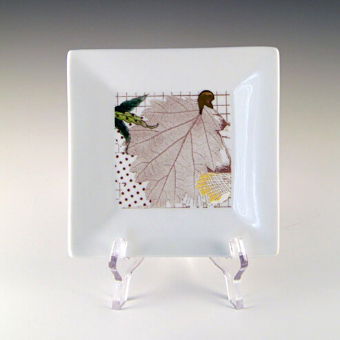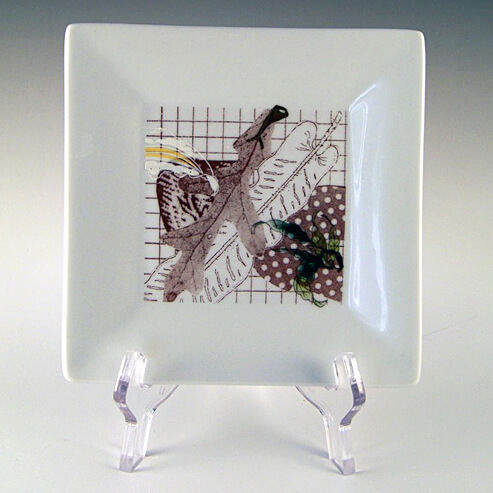 Recently, I am using commercial plates as an immediate and readily available neutral surface for these decal explorations. All this is in an effort to engage the viewer in the visual shifts and relationships formed.