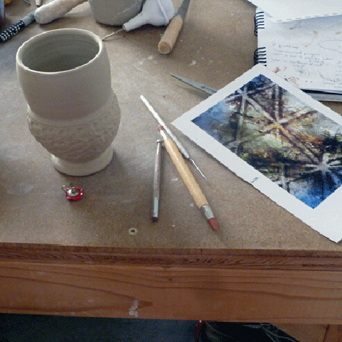 Heirloom: Collaboration with Michael Strand. Maren is a printmaker and ceramist who is fully engaged in social practice and has an incredible ability to adorn and decorate. Strand will be throwing 3 Tall shapely tumblers for Maren to adorn and alter. These will be housed in a beautiful handmade box to be distributed to a family in Red Lodge that has an intergenerational presence, ie Great Grandmother, Grandmother, Mother, Daughter, Grand daughter, etc. This will be a gift for them.. Given to the elder first to use, journal and pass down the lineÉ Ending with the youngest who will then own the workÉ To be passed down. This work will examine the history and function of heirloom.. By providing the opportunity.