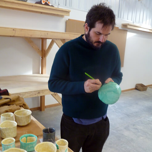 I work specifically at the margins of the ceramics discipline, seeing how I can push our understandings of the field to open the space for craft art to operate. I use clay materials in different states of being in my final pieces to challenge and expand people’s perception of their surroundings and sense of belonging. Fired ceramic objects relate to an implied sense of security through durability. Simultaneously my employment of moist clay and slip remind us that our own subjectivity and spatial relations are in flux. Appropriated objects remind us of our context, as beings among artifacts, with meanings and histories that are beyond merely our own experiences. Building/home improvement materials convey an aesthetic accessibility, a trace of people resolving the issues of their own comfort and desire, in a contemporary way. By fusing light with shadow, ceramic objects with the phenomenon of moist slip and an assortment of appropriated elements, I am conducting a study of the terms of our embedded-ness phenomenologically, linguistically and socially. My aesthetic hinges upon a minor de-contextualization of a thing or feeling so that it can be used an means for us to re-experience the familiar in a way that lets us see it again for the first time. The work is a studio based research practice, which allegorically employs the transformation of materials and conceptual nomadism to create objects and installations positing questions that are not rhetorically possible with rational methodologies alone. I seek to create a new thing from the combination of intent and process rather than simply reproduce preconceived ideas.