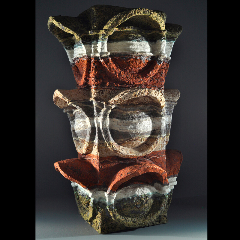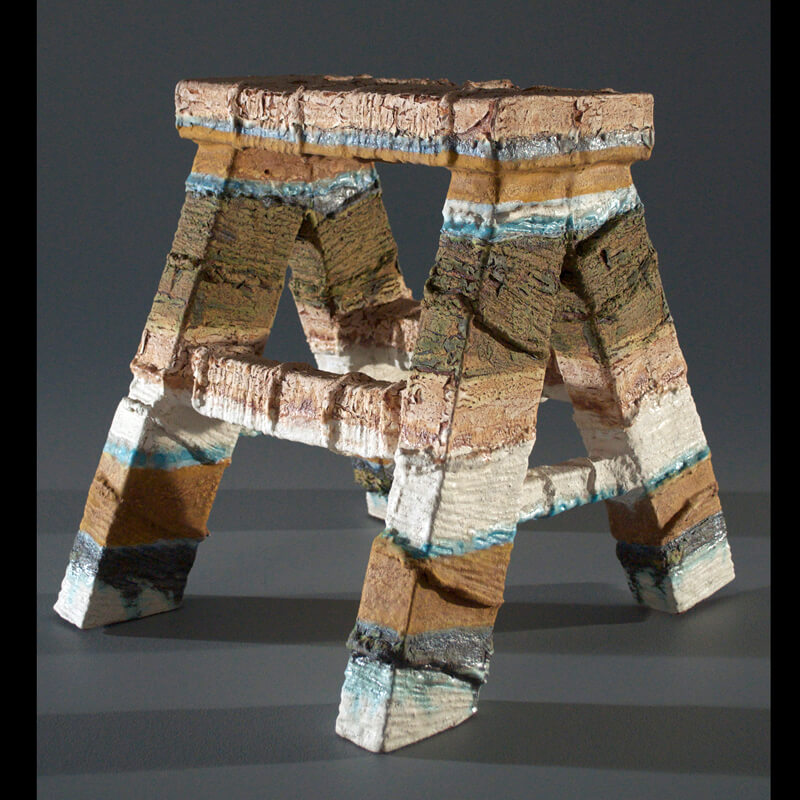 What I want the work to be is formidable, mysterious and raw…a reflection of my research, intellect and drive to make. To attain this presence, I construct contemporary objects and add to them texture and glazing patterns representative of geologic strata. This contrast creates connections that span billions of years and brings attention to humanities’ common heritage, uncommon development and shared future.