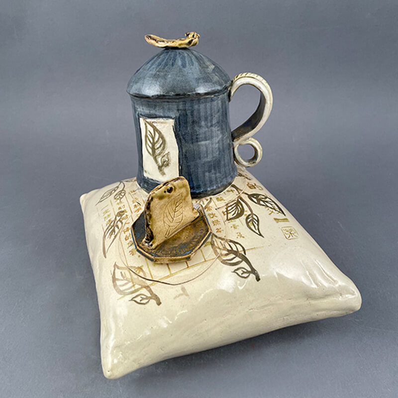I enjoy making both functional pottery and sculpture. Oftentimes I have sculptural elements in my pottery and vice versa. The themes of my work largely come from the cultural or social impacts I experience around me. As a Chinese, like everyone else in Taiwan, I was unaware of my cultural identity until I came to the US. The first few years of living here involved lots of culture-shock experience. Going back and forth between two different cultures, I find myself constantly switching between my identities, adjusting my social behavior and, a lot of times, food. So, food became a constant symbol in my work to reflect those cultural impacts. As a teacher too, the interaction between students and me, and among students, has played another important role in my work.