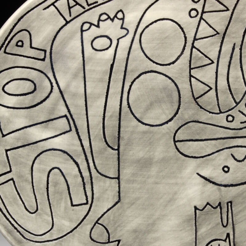 I look to mass-produced glass, metal and plastic for inspiration just as much as I look to contemporary and historic pottery. The recent drawings on my work come from diagrams, images of cells and viruses, Mayan glyphs and symbols used in mathematics.
