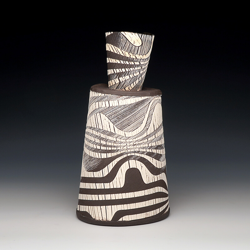I create minimalist ceramic design objects for everyday use, and I design bold and stylized surface patterns featuring tessellations, optical, and geometrical illusions. Inspired by the Gestalt Theory of Visual Perception – where the mind tends to find order and logic in what the eyes see – I design abstract patterns to instigate a dialogue between form and surface, to challenge and expand perceptual assumptions when experiencing a minimalist yet complex functional design object. I integrate digital fabrication methods within my creative process, and I fire the work in wood, gas and electric kilns to advance explorations of forms, surface design, and materials research.