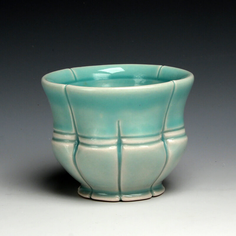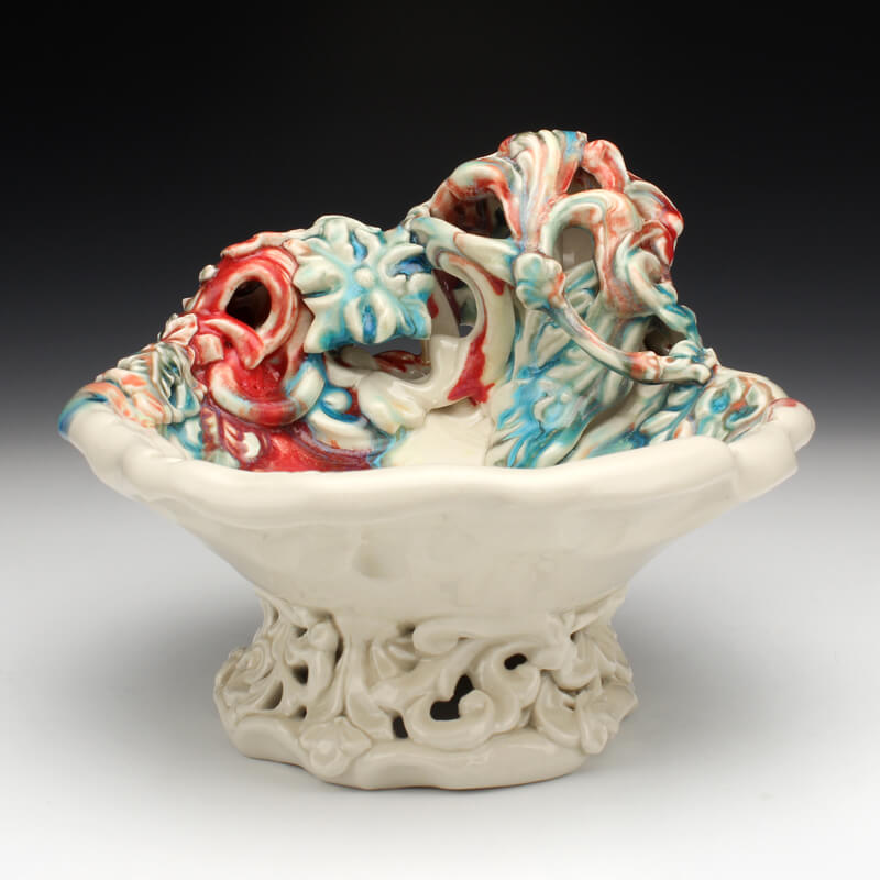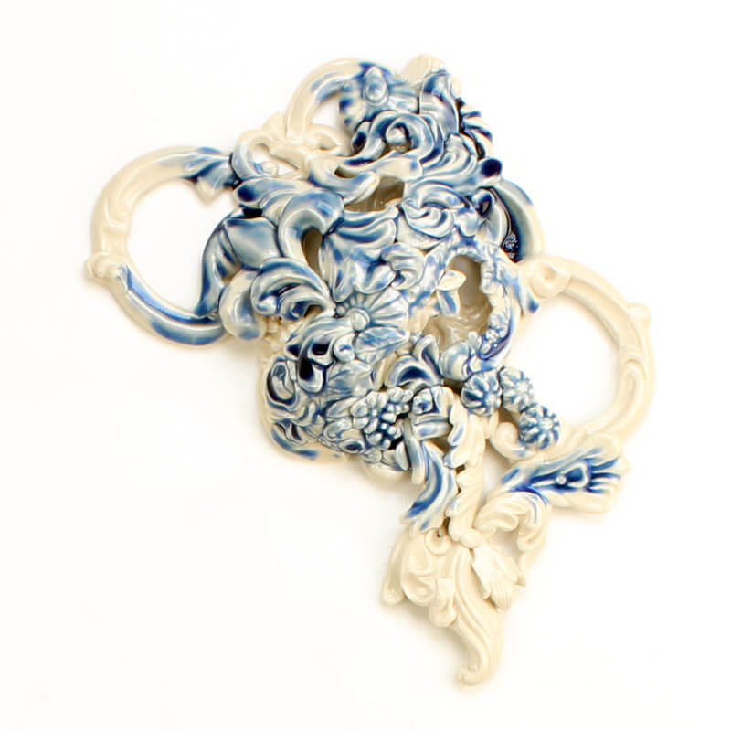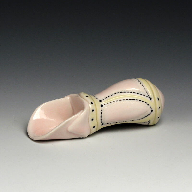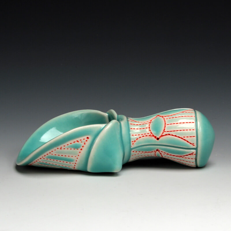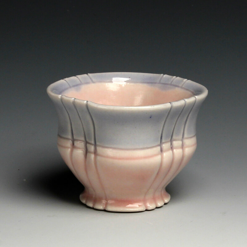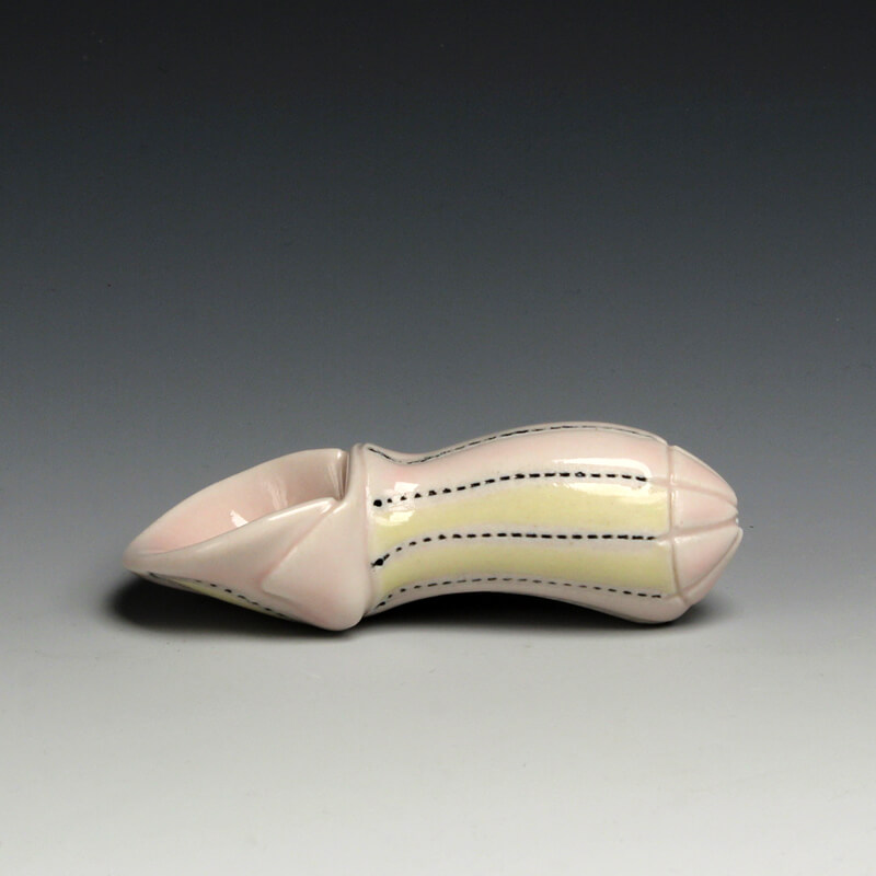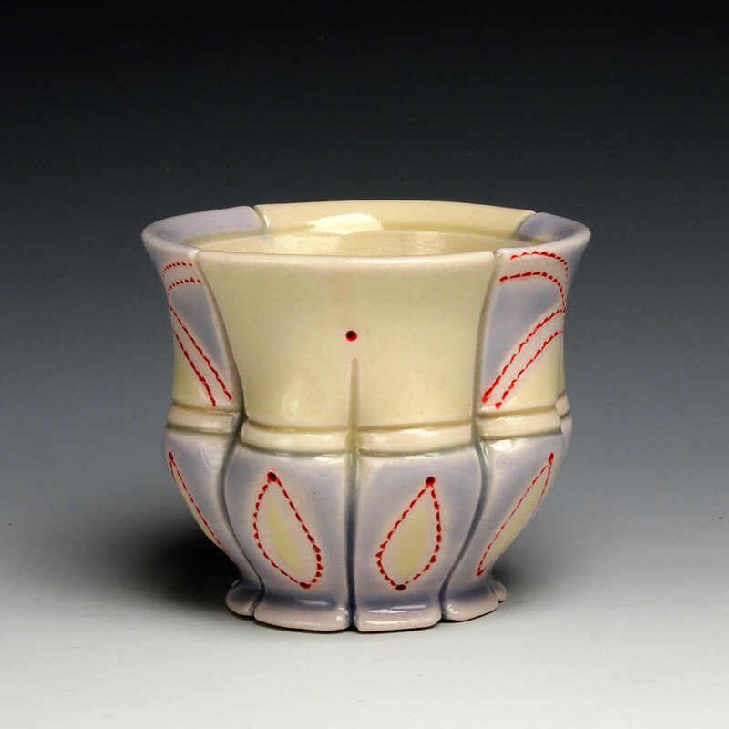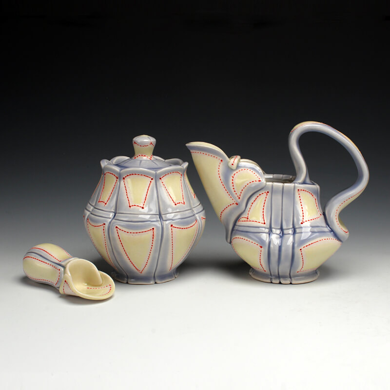 “Using wheel thrown and hand built porcelain, I attempt to seduce the viewer with graceful lines in form and clean, solid craftsmanship. Attention to detail and fluid movement throughout each piece is meant to enchant the viewer with nostalgia for childhood and dress-up.”