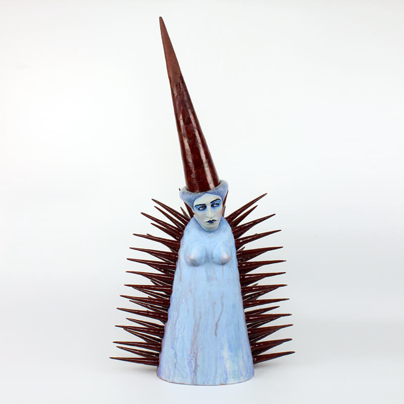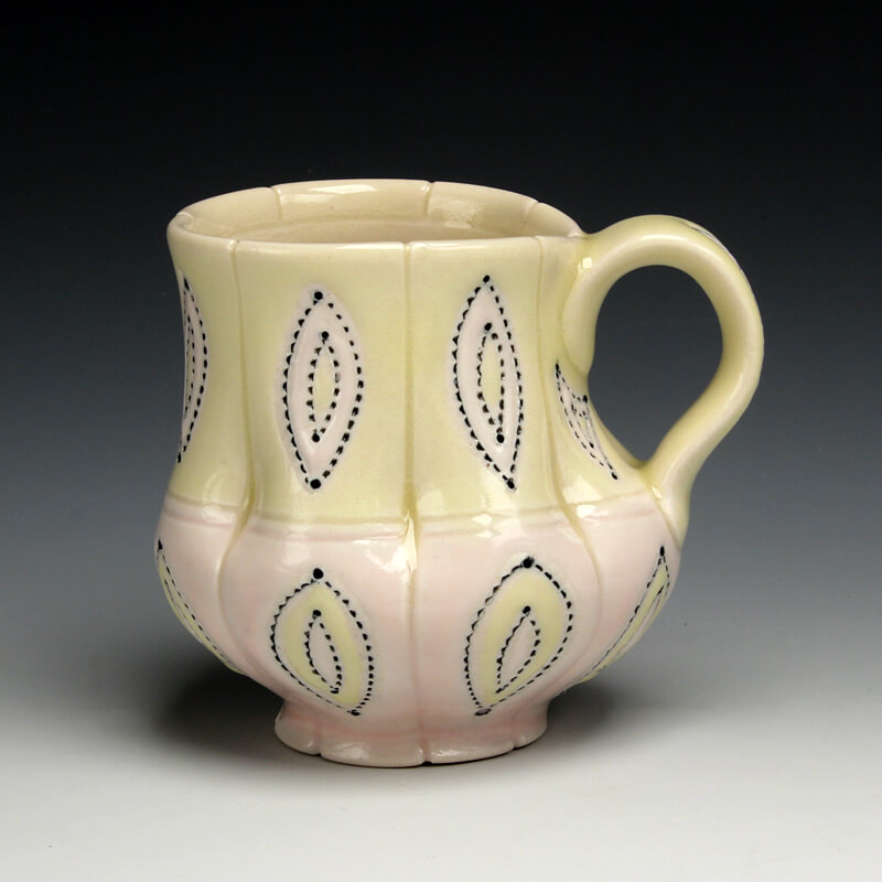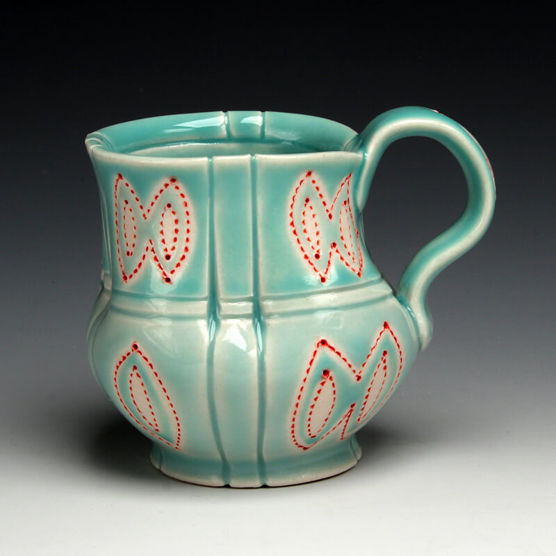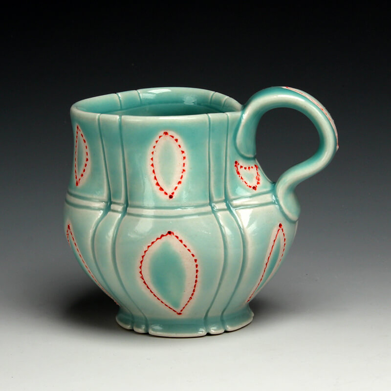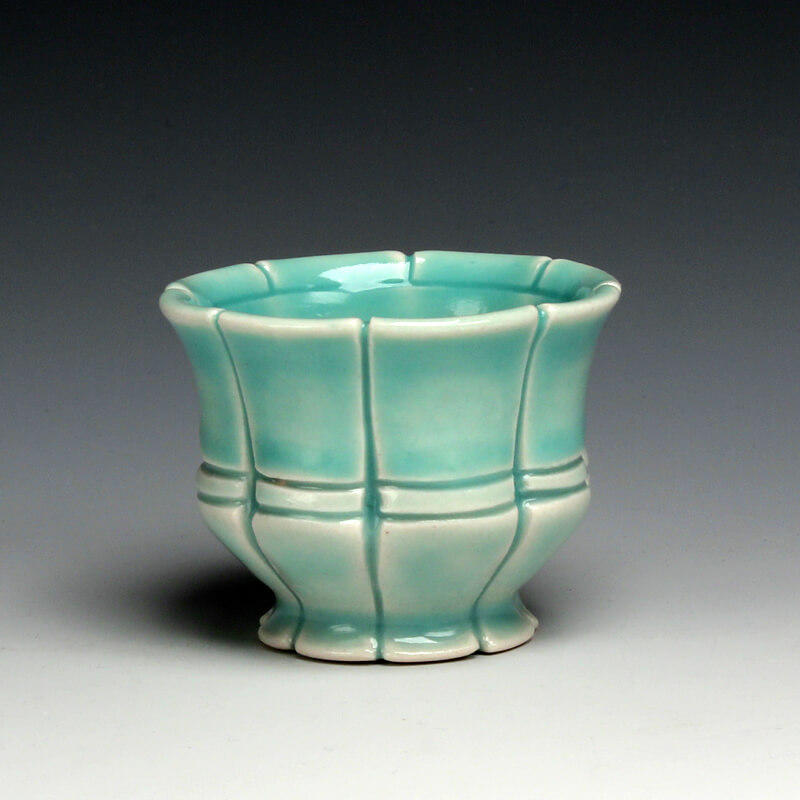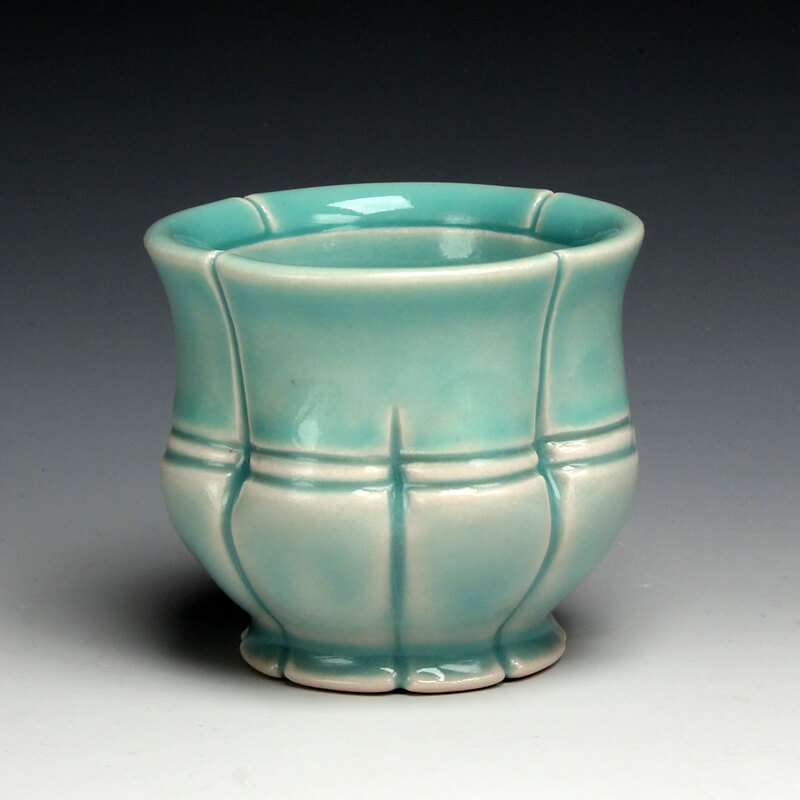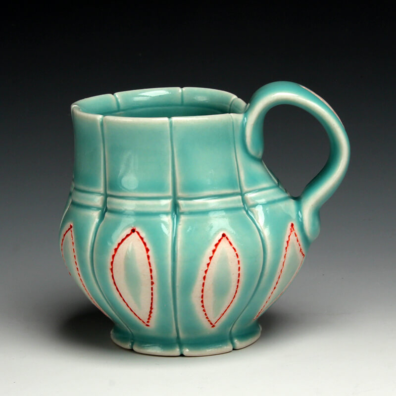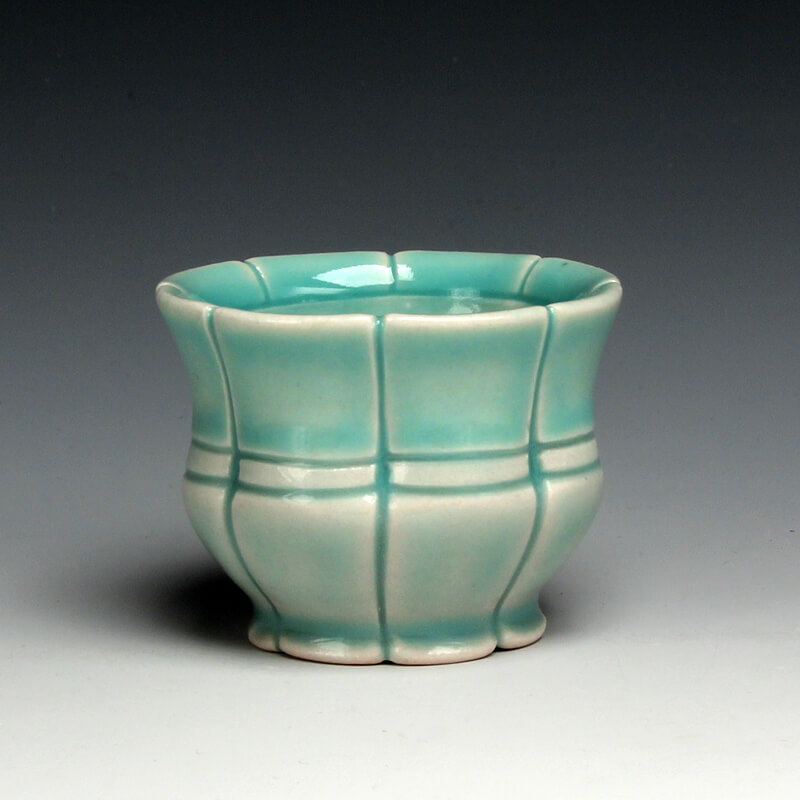 “Using wheel thrown and hand built porcelain, I attempt to seduce the viewer with graceful lines in form and clean, solid craftsmanship. Attention to detail and fluid movement throughout each piece is meant to enchant the viewer with nostalgia for childhood and dress-up.”