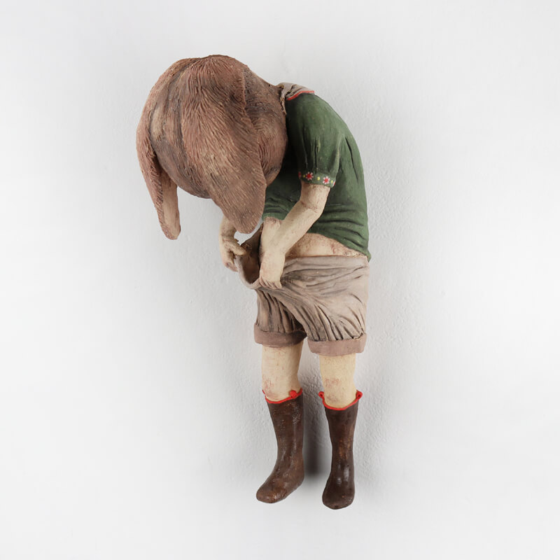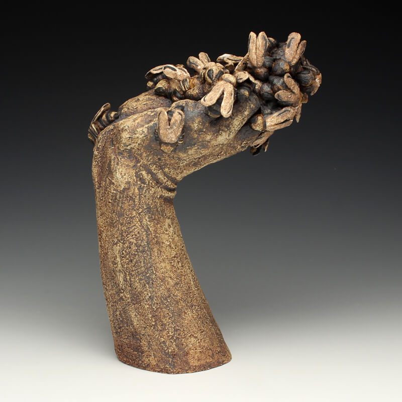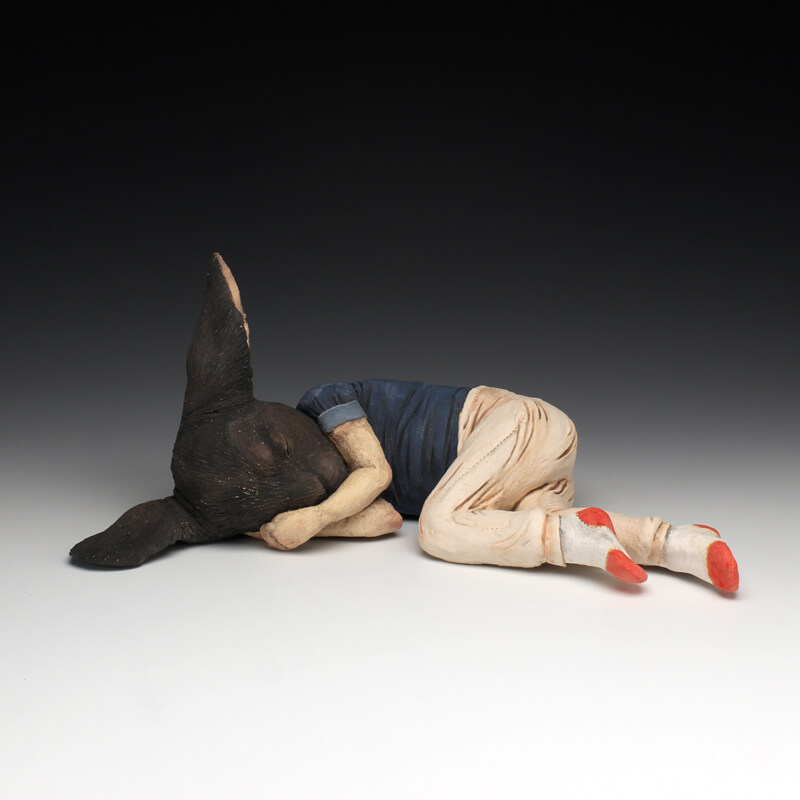 Crista Ann Ames is a sculptor working primarily in ceramics, wood, and textiles. Through the layering of mythology, iconography and personal narrative, Crista explores how our own animal nature relates to the ways we establish and sustain personal relationships. Raised on a small hobby farm in Washington State, Crista often draws on her own experiences to explore pastoral life, animal husbandry, women’s craft and fertility.
