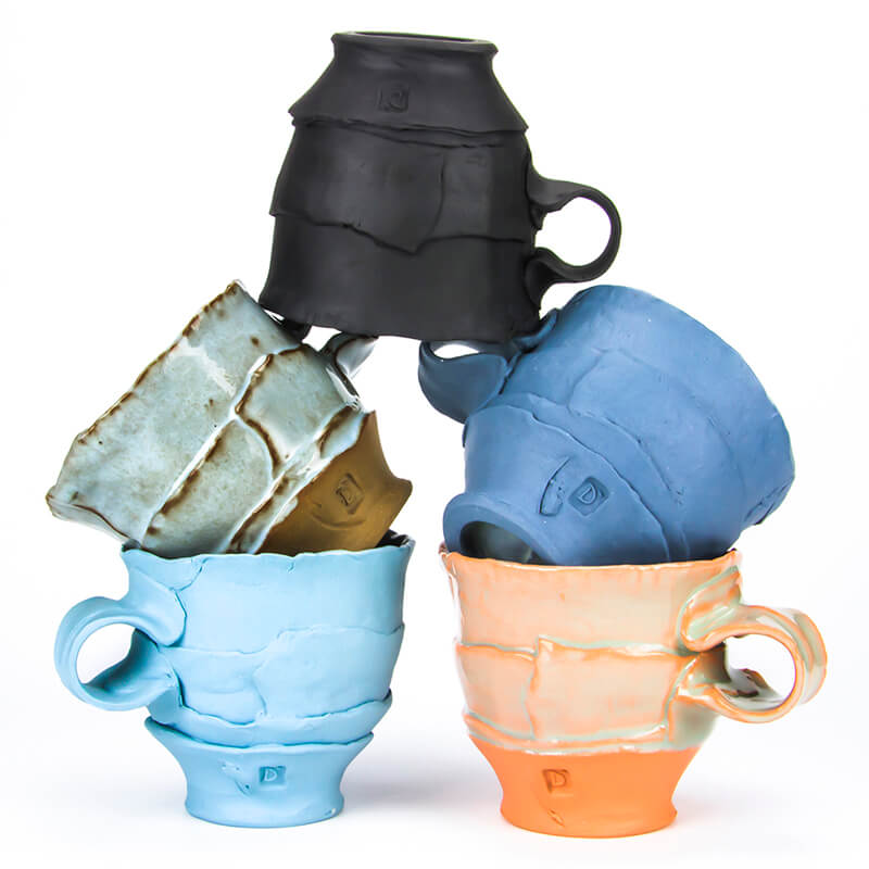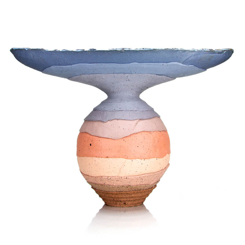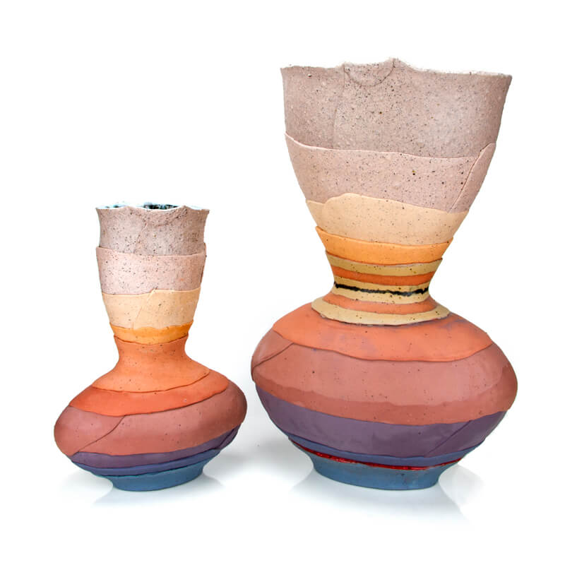 Through the ceramic lens I focus on questions about our relationship with objects. I explore the concept of humanity’s authority over landscape and record of construction as a form of time materialized. The geographical layered strata of each vessel represent fragments or glimpses into the density of every assemblage. With the intersections and overlaps, I contemplate the dynamic relationship between materiality and landscape and our attempt to utilize it. Each vessel is made using clay that is colored to reference vibrant natural tones found in the wilderness. My work has a desire to cultivate order and my pots are designed to manicure domestic space.