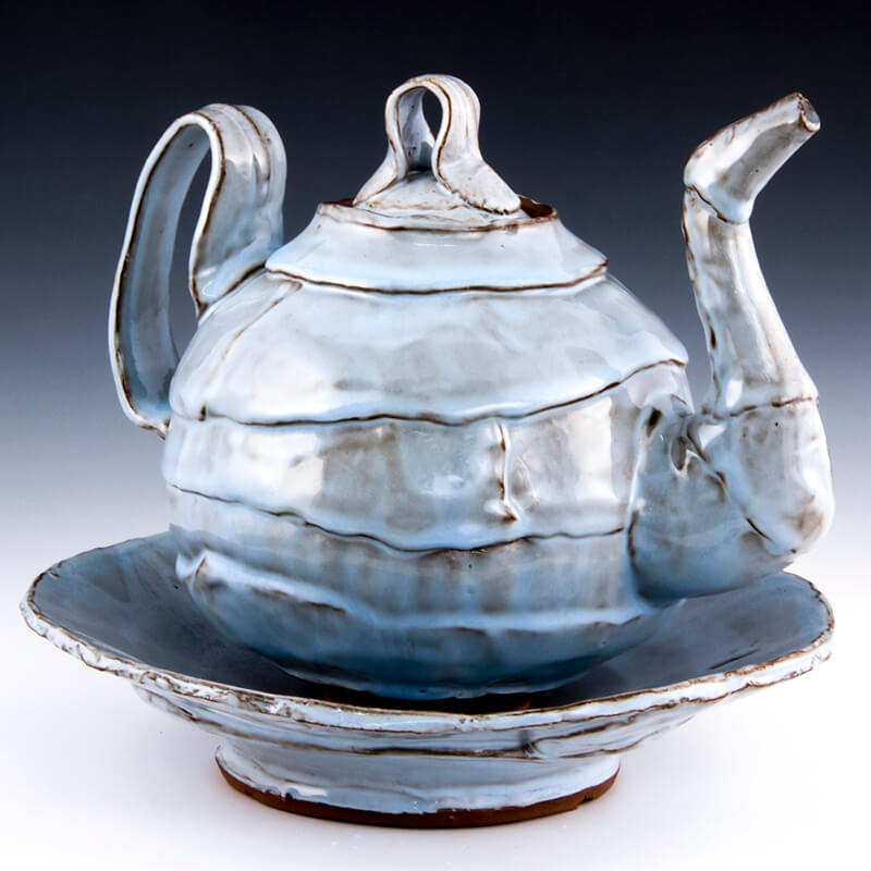 Focusing on the fluidity of process and materials as remnants of making, I work with a limited number of tools and movements to allow the clay to actively inform the line quality and elegant volume. Relying heavily on the physicality of the technique I generously push and pull these lines to develop an undulation that resembles natural rhythms. The harmony of repetition comes through meditation of movement. The presence of process in the work is essential as my forms are searching for confidence in their construction. The conversation between the stained clay and glaze obscures or reveals a bodily response to a continuum between clay and ceramic.