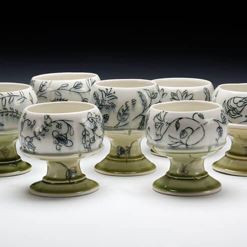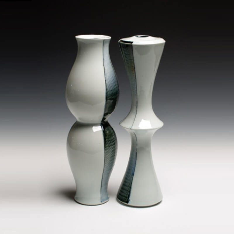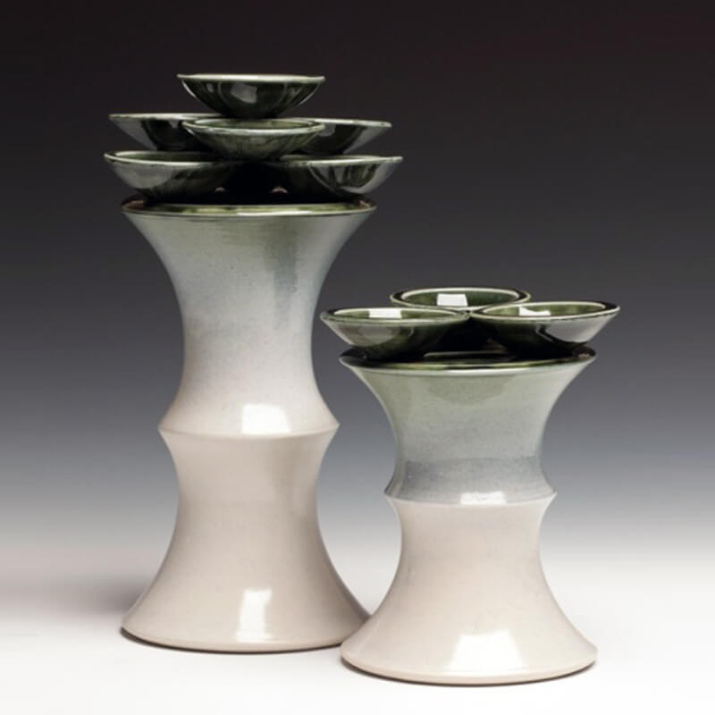 The rhythms of the day to day are mirrored in the repetitive nature of producing multiple forms with subtle variations. I think of myself as a tinkerer in the studio, adjusting a form here and there when I throw one piece after another. The subtle and individual nuances of each form often are riffs on historical pots I have studied. I like to blend the historical forms with my design sensibilities in much the same way I like to blend glaze colors. They overlap and transition into one another.