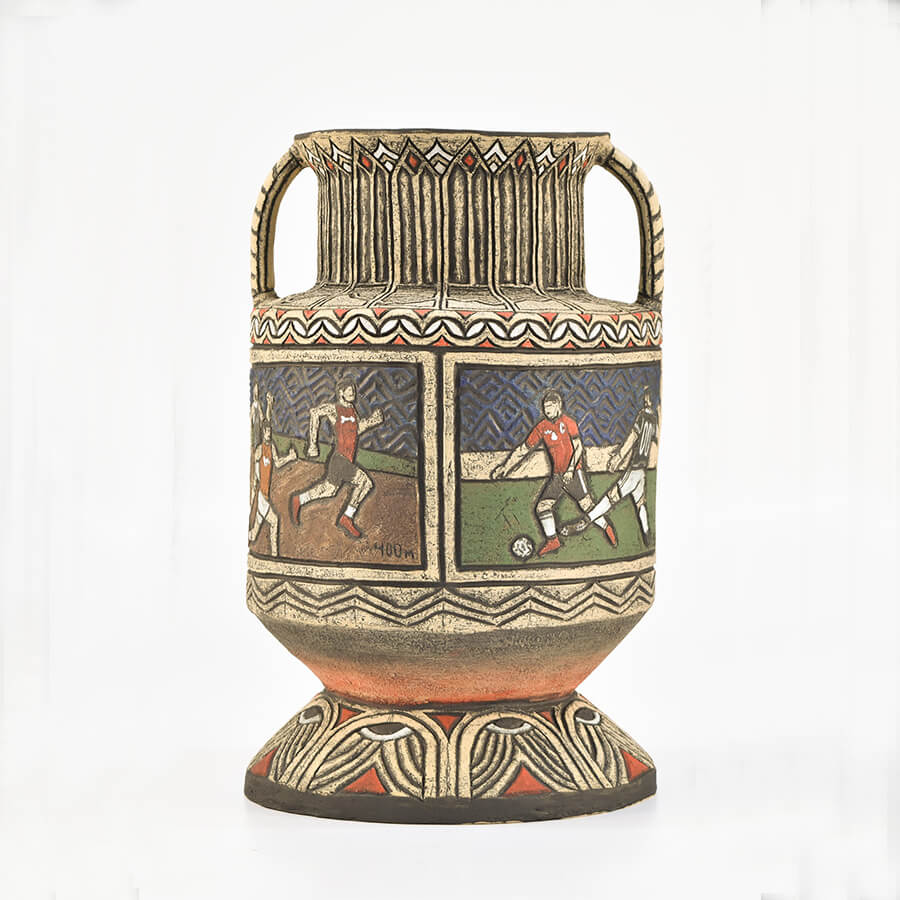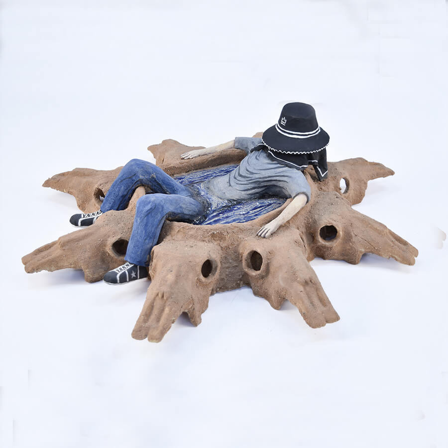 As a Mexican artist with roots in El Paso and Juarez, my creative journey is deeply intertwined with Chicano culture. Through my work in functional and sculptural ceramics, I endeavor to share narratives that reflect the richness of my heritage and the diverse influences of Western living, spanning urban and rural landscapes. My art reflects my cultural identity, drawing inspiration from Chicano traditions that honor familial bonds and Mexican heritage. I incorporate symbols like rosaries and other artistic motifs, infusing each piece with layers of meaning drawn from my community’s collective experiences—embracing the vibrancy of urban life, the rhythmic beats of rap and hip hop, and the rustic charm of ranch living along the border. Influenced by iconic figures in music, cinema, and art, such as A$AP Rocky, Isaiah Rashad, and The Strokes, I explore the fusion of materials and styles, infusing my creations with the diverse flair of these idols. Whether inspired by fantastical dreams or grounded in everyday realities, each piece becomes a canvas for countless thoughts and ideas, corresponding to inscribed notes or carved scenes unfolding on the surface. With a meticulous eye for detail and storytelling, I sculpt my pieces with precision, using the form and texture of clay as a medium to evoke intricate narratives. Each composition begins with a blank canvas, gradually transformed through carving and shaping until it resonates with a sense of completeness, enveloping the viewer in a multifaceted tale that unfolds from every angle.