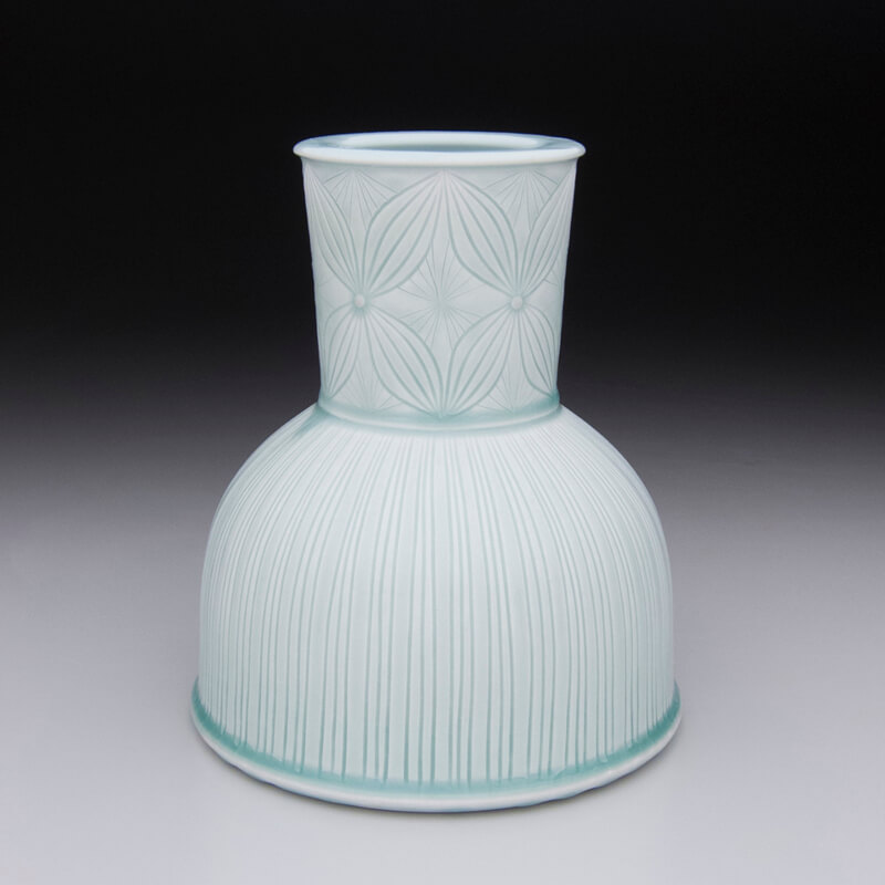 I am fascinated with antique artifacts, the way they can speak of mastery of lost peoples, places, and cultures. This inspires me to create works that both radiate history and capture my own place and time. I work toward a clean aesthetic that celebrates the masterful simplicity of antique Far Eastern pottery, while retaining the modest utility of colonial American wares. The surface of my pottery is meticulously carved with intricate designs that borrow from nature and incorporate the human touch. Much of the carving on my work is informed by pattern languages found in indigenous fiber art, such as Hawaiian tapa, Incan cordage, and Zulu basketry.