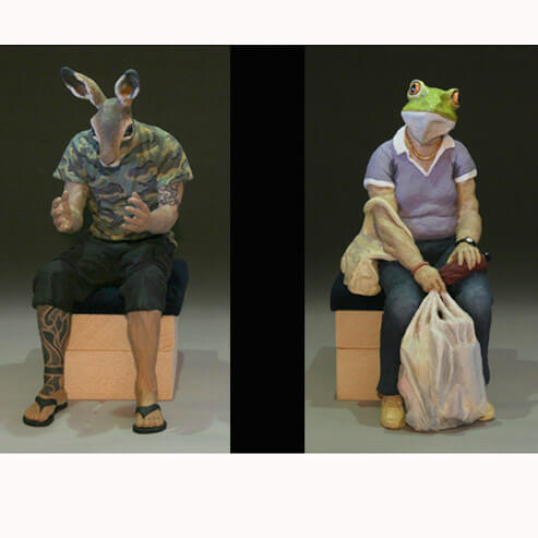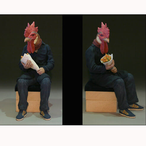 Allesandro Gallo was born in Genoa, Italy, and is now based in Helena, Montana. After studying law at the University of Genoa, he earned a BA at Chelsea College of Art in London. While studying painting, he began experimenting with digital photography, manipulating images to create scenes of animals in familiar city settings. By 2005, he decided to give his creatures a physical presence by sculpting them in clay. Gallo and his anthropomorphic characters have received widespread recognition, with his works being featured in the 237th Annual Summer Exhibition at the Royal Academy of Arts in London and the 54th Venice Biennale in 2011. In 2012, he received a first place grant from the Virginia A. Groot Foundation. In 2014 and 2016, he had solo exhibitions at the Jonathan Levine Gallery in New York.