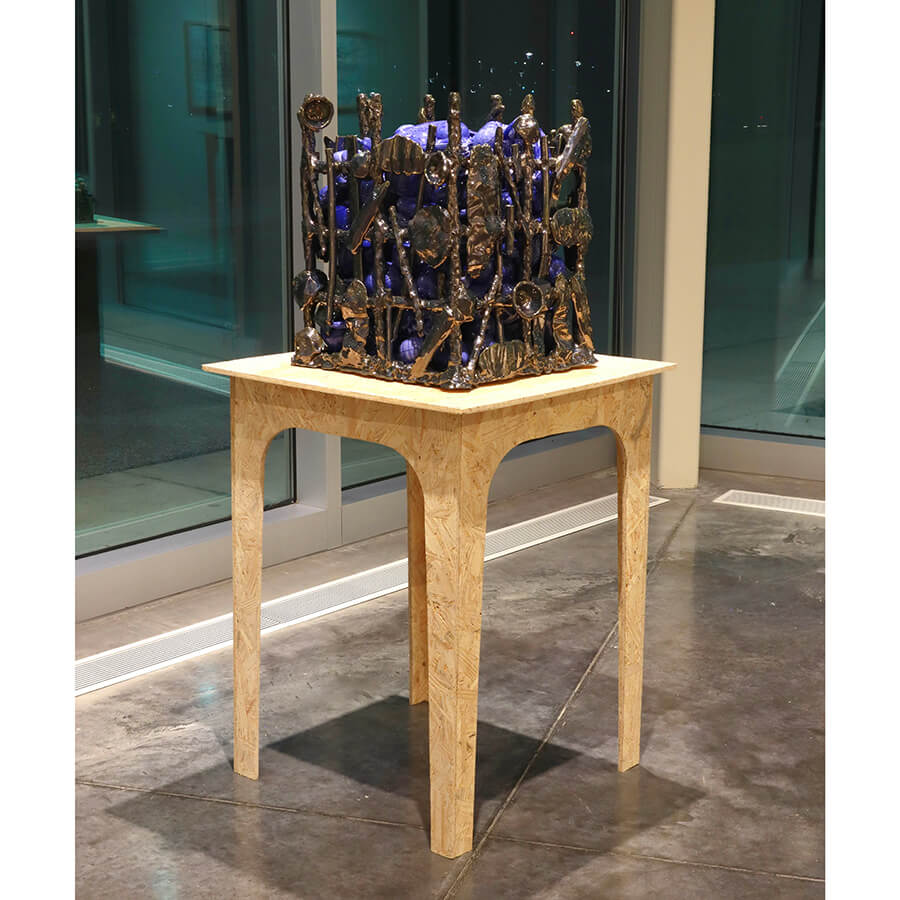 Alex Okenfuss makes ceramic objects that acknowledge technology as an inseparable part of our existence, exploring the tension between the physical and digital to question perception and reality. His work is primarily created through hand-building lattice-like structures and patterns or utilizing digital fabrication and slip casting.