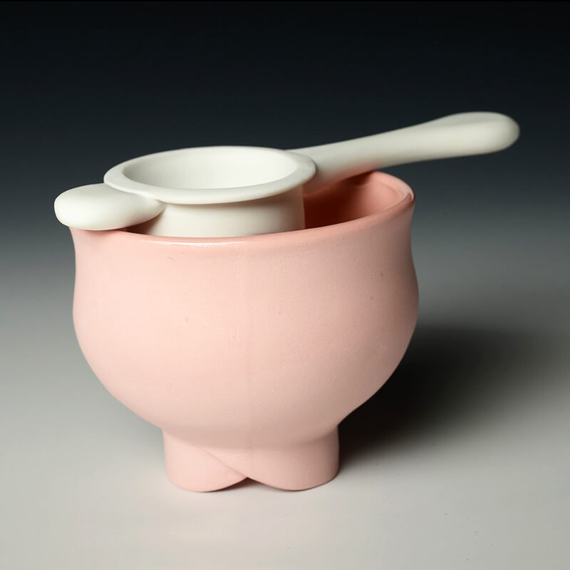 I am using ceramics as a way to question the contemporary standards our culture has set through the influence of the media. I find we are directly affected by the images that surround us on a daily basis. Visually permeating, advertising sells us value, image and an overall perception of normalcy. I am interested in the way these constructed images affect our subconscious idea of gender characteristics and body image. Many of my own perceptions stem from my time spent as a college cheerleader. This immersed me in an environment where self worth was based on body weight and personal appearance. I saw first hand the measures taken to achieve a specific physique and became interested in the number of ways that people deal with control in relation to food intake. These include the act of portioning food, smelling food, chewing and spitting it out.