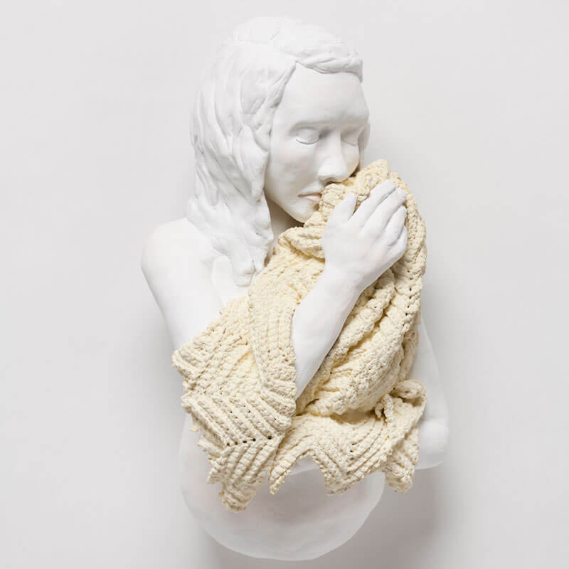 Motherhood is a multi-faceted experience. Through figurative ceramic sculpture and drawing, I attempt to bring equal attention to both the light and darker aspects of motherhood to show the importance of a well-rounded narrative to this universally recognized role. The ease of sentimentality that arises with the stereotypical ideals of mothers and babies is charming, but does not tell the whole story. And in my work, I aim to tell the whole story. Through depictions of the female form and mother, along with symbols such as the blanket, the pelvis, and the child or infant, I set up both familiar and slightly askew scenarios to challenge generalizations of motherhood. By examining the changes my children bring to my life, my work becomes loosely biographical. Though I also find richness in tapping into the stories and experiences of other mothers I find in literature, artwork, and in personal relationships. I take all those combined experiences to analyze the commonalities that mothers experience but do not always speak to openly. I employ comparisons of hard vs. soft and durable vs. fragile through the use of clay as my primary medium. I intentionally utilize the direct association of the body to the experience of motherhood by including the human figure, and embrace the vulnerabilities, raw emotions, and loosening of boundaries, both physical and emotional, that exponentially change women who take on this mantel. Through covering or wrapping various parts of the body I enhance my conversation concerning boundaries, and the contrasting elements of comfort and suppression. Overall, I elaborate on the taboo that while most mothers love their children more than anything else, they all also grapple with varied human emotions as patience and endurance is tested.