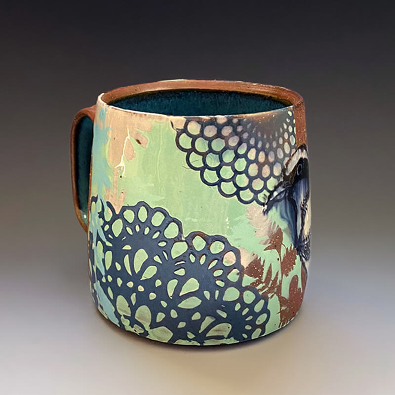 As part of my love letter my work explores the often overlooked, quiet beauty of my fly-over home that I experience right outside my studio. The wildflowers that grow along the seemingly endless miles of gravel roads and fence rows occupy some of the background space of my work, and the wildlife that adorn the pots capture attention and invite viewers to look closer, just as they also do in real-life. This work is intended to be a tactile experience for daily use. I am endlessly fascinated by textures and how things feel, and I strive to create work that begs to be held and investigated, and feels at home in user’s hands.
