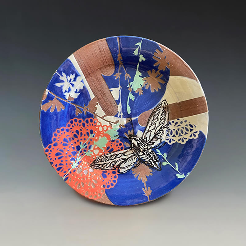 Becky Meneely took her first pottery class at the age of 7 as part of an after-school program while living in rural western Kentucky and has been hooked ever since. She minored in art with an emphasis in ceramics and graduated with a BA in 2010. She then bounced around using whatever studio space she could until finally purchasing a kiln in 2017. She currently works out of her garage in rural northwest Missouri, where she draws inspiration from the plants and wildlife that live on – and pass through – her property.