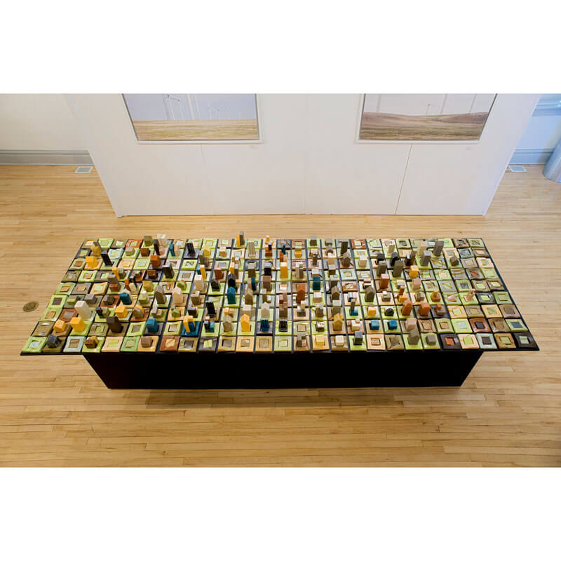 At different times in my art career, I have created installations, drawings and small earthworks as an integral part of my art. Through my wanderings around Colorado and the West I’ve found the landscape to be filled with vernacular earthworks — earthworks not made by artists nor possessing the intent of being fine art, but of necessity. These earthworks serve the purpose to fence in livestock, gather and hold water, lay roads, create demarcation of ownership. The traces of human intervention are evident everywhere. Patterns, laid out by surveyors in varying geometric shapes, have greatly influenced our view of the Western landscape. My recent work explores vernacular earthworks and methods of demarcation from the quilt-like grid of the Public Land Survey System to the flowing vara strips or lineas laid out by Spanish settlers in Colorado and Northern New Mexico. They have provided me the opportunity to make works of art that celebrate, question, and meditate on the confounding and emotional issues of how humans occupy and alter the landscape.