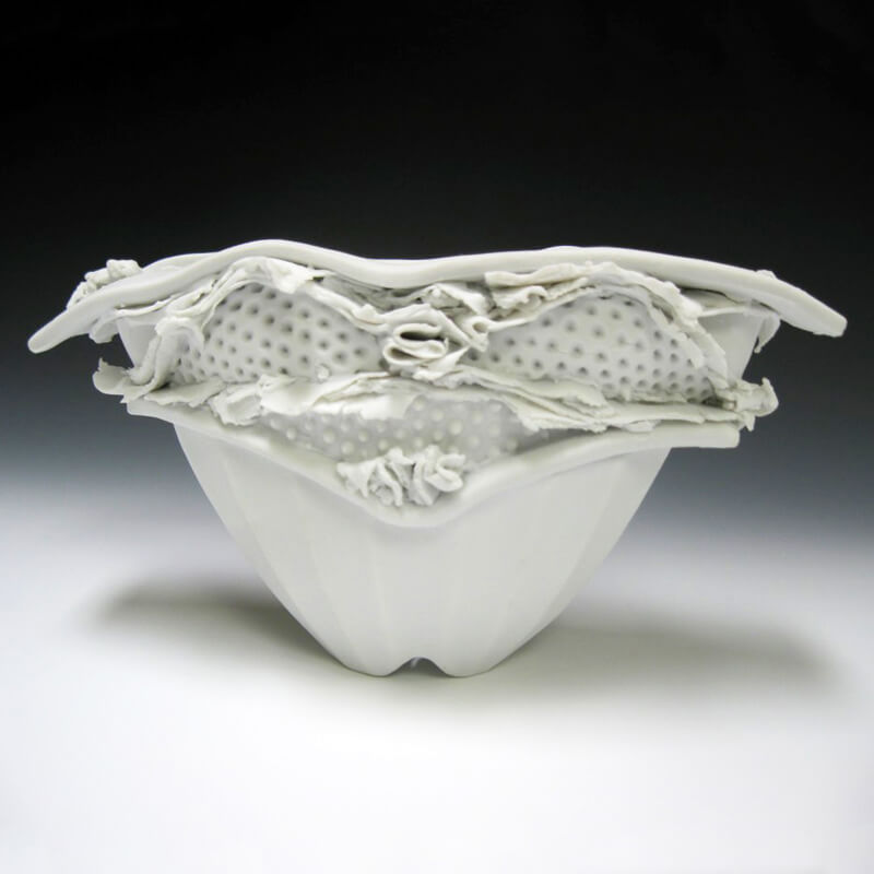 Through my work, I explore the boundaries of excess and constraint within the parameters of the formal issues. I am interested in conversations that take place between me (as the maker) and the material (as a responder) and vice versa. Each toss of the clay or each tool mark elicits a new response, keeping the conversation fresh. Through experimentation with form, (often influenced by Asian and/or Classical forms) I explore the balance of fluidity and stability. In the completed works, the process has included the balancing of control and discovery, excess and constraint, speaking and listening: all are essential.