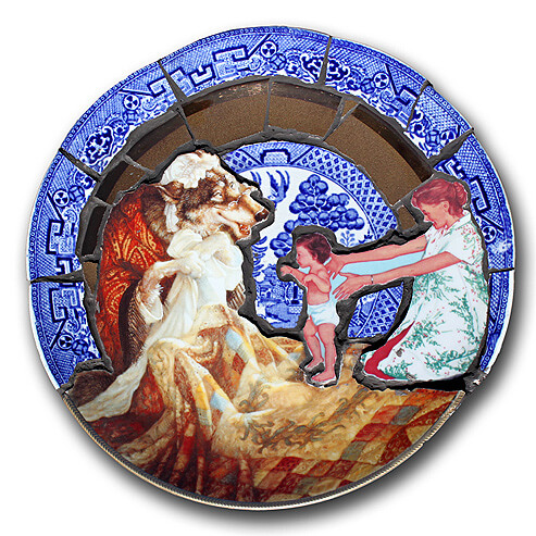 In Garth’s studio, you can find him feeding his porcelain habit, decorating cups with an Easter egg engraving machine, chopping up collector plates with his new diamond wire saw… and maybe even shooting china paint out of a paintball gun.