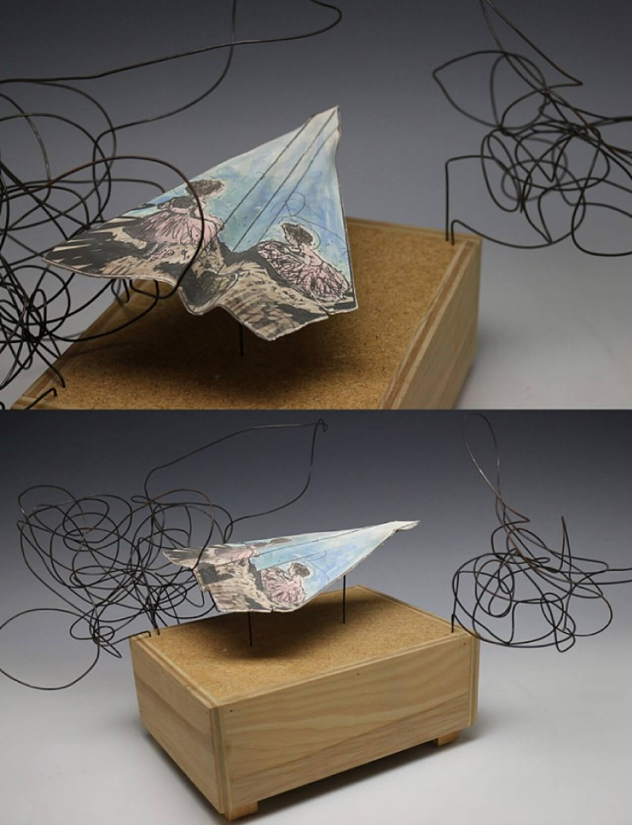 This search is driven by the physicality of materials and the intersection of two and three-dimensions. I seek to play between the boundaries of object and image. I am concerned with dreams, dreaming, wanderlust, relationships, particulars, and fun.
