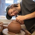 Jake is a potter living in the mountains outside of Helena, Montana with his family. He was born and raised in Helena, and much of the ideas behind his work are influenced by the landscapes of Montana and from growing up in a community that has long supported artist-potters. After pursuing opportunities around the country for the last decade, he moved back to Helena in 2023 to settle down and build a sustainable studio practice.