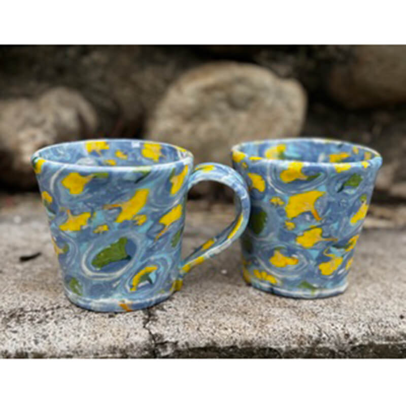 In 2022, Jen started to take a deep dive into colored clay after taking a couple workshops with Dean McRaine on Kauai. Jen has been working to create a collection she calls “Seeking Aloha” using a variation of Mokume Gane technique. As well as a collection of Nerikomi pieces.