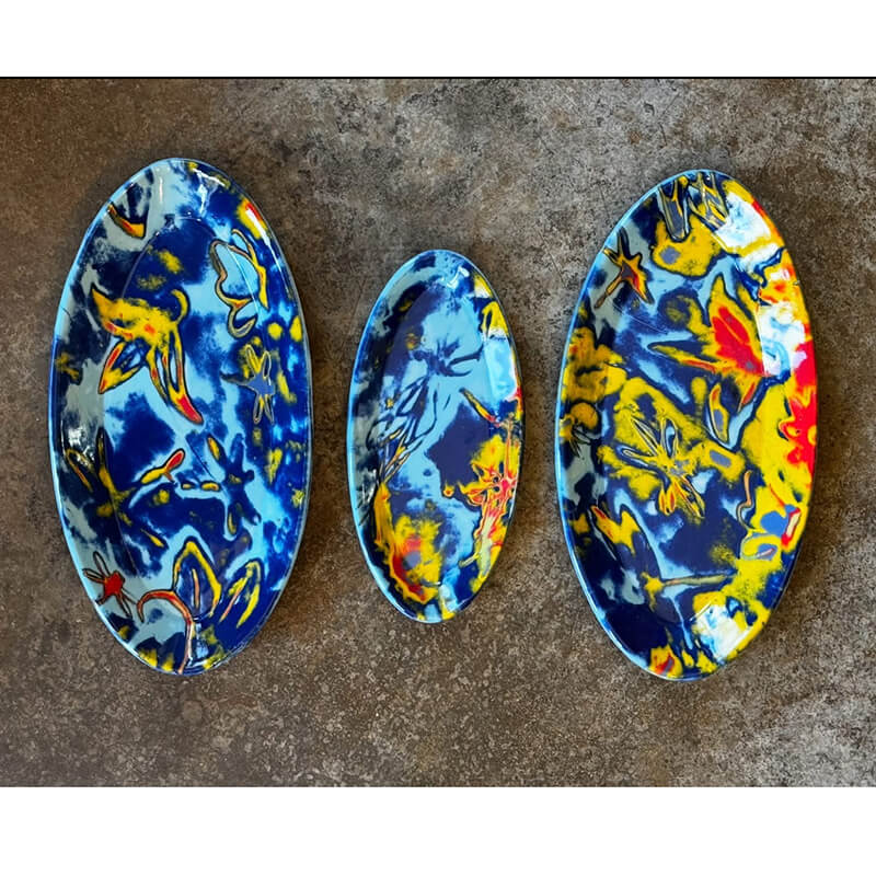 “Do what you love, love what you do. Creating, with clay, is what Jen Selwyn loves to do most. Inspired by the nature that surrounds her on Maui, Jen makes ocean and rainforest themed pieces to sell at local galleries and markets. She mostly makes these pieces for tourist to take home memories of the island. Her latest work, Jen says is for her. Called “Seeking Aloha”. Jen uses Nerikomi and Mokume Gane techniques using colored stoneware clay to make brightly colored one of a kind pieces. Although Jen does sell these pieces as well, the process is more personal , almost meditative. Slowing down the creative process and enjoying making, finding Aloha in every piece.”- Selwyn