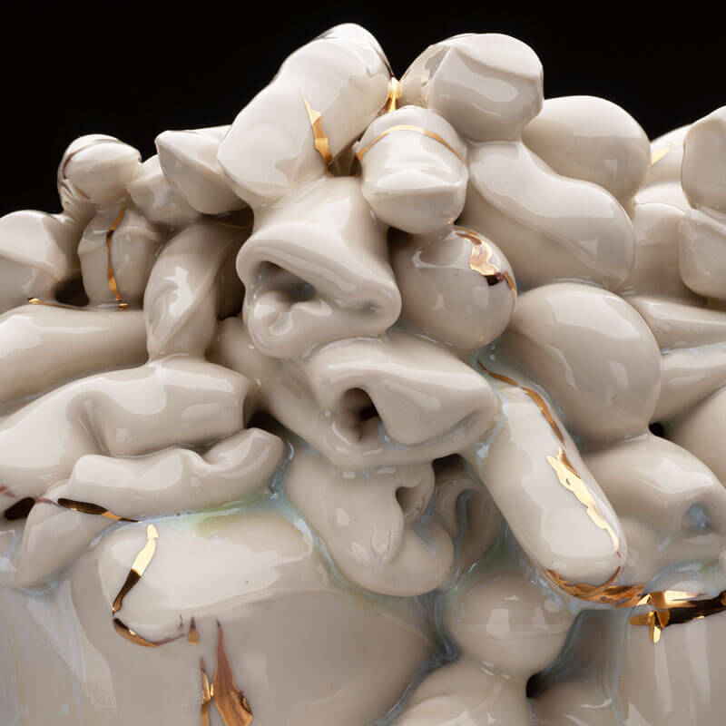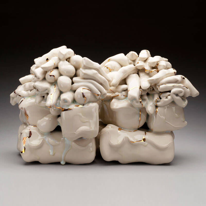 Fast-forward to the Spring of 2019, I have a new studio in my backyard and a small house that is somewhere between beautiful and terrifying, depending on which room you are in, how high the lizard population is, and which glasses I have on. When I returned to clay working fulltime in my own studio, it was clear that what was important for me to make was changing. The last body of work from my old studio was generally about the landscape and the cultural history of farming communities around East Texas. The nerikomi colored porcelain and casting techniques that I used in those sculptures were as important to the content of the work as the imagery was. The sculptures were also about the process of change, and how change can be marked by the passage of time.