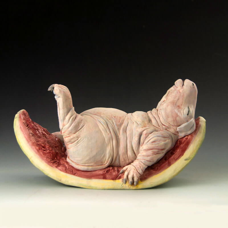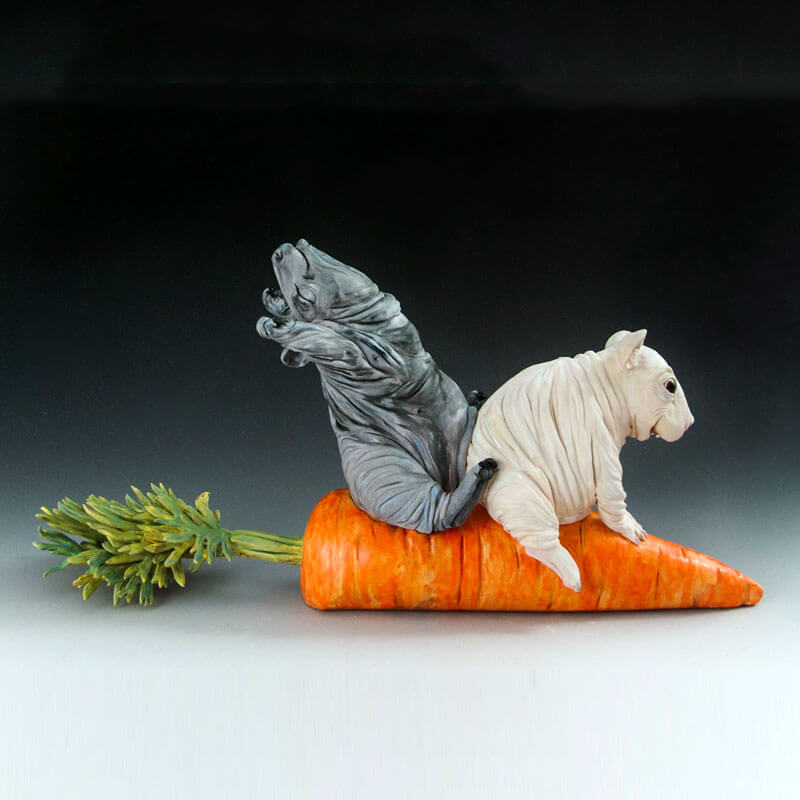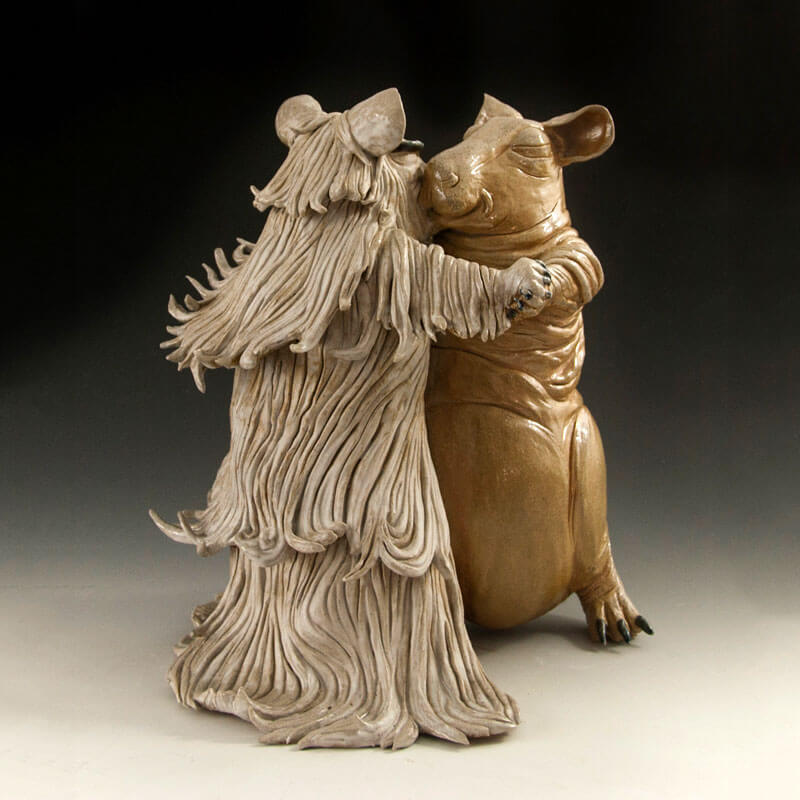 Various species of animals serve as my muses. Sculpting them allows me to return to the unencumbered moments in my childhood in which I ran around the Alaskan woods pretending to be whatever critter my imagination chose. In my sculptures, I use familiar and foreign shapes and textures to share human narratives. I identify with multiple characteristics of the creatures I choose, which means these animals embody contradictions of strength and fragility, of fierceness and sensitivity.