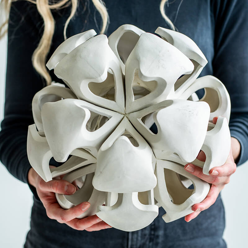 Maia McNeil is a ceramic artist currently residing in Logan, Utah where she is receiving a Bachelor of Fine Arts in ceramics at Utah State University. Her work has been shown in Logan Utah, Aurora Colorado and in Denver Colorado. She focuses on sculptural forms and is influenced by her love of engineering and parametric design. The stability these subjects offer became a great source of comfort to her as she grew up in constantly changing environments. Within her ceramic practice, she skillfully merges her passion for mathematics with clay as she discovers new pathways for aesthetic experiences. She hopes to alter how people perceive ceramics through popularizing the connections that exists between art and other academic fields of study.