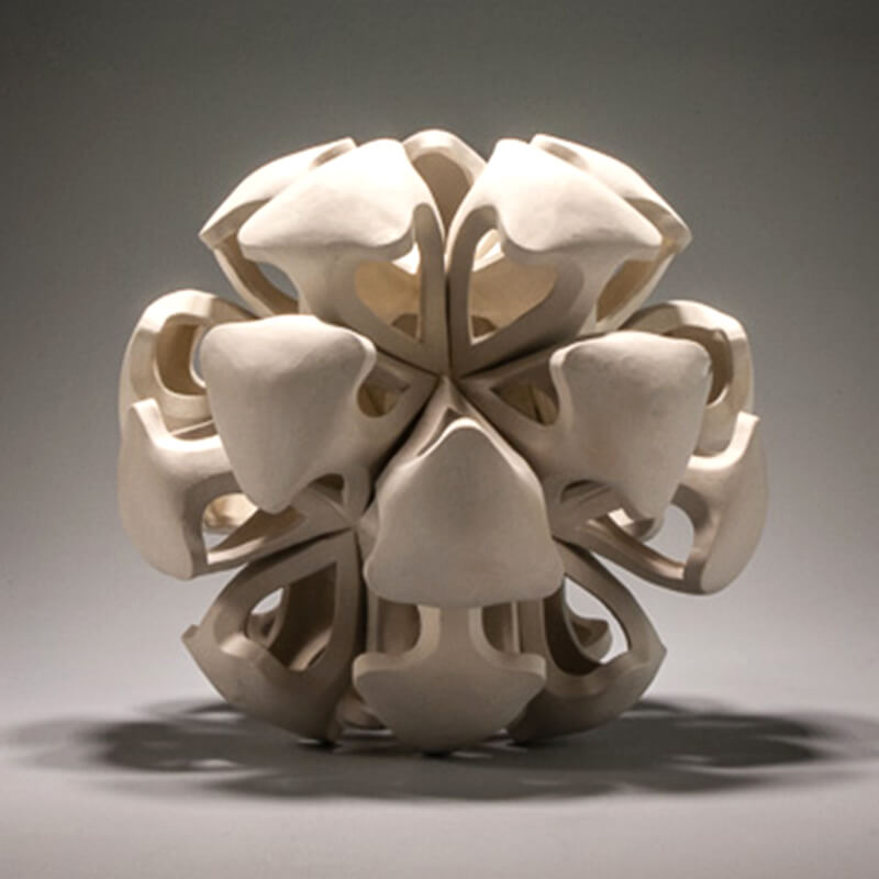 I am motivated to create work as I find elegance, beauty, and balance within realizing mathematical shapes and relationships in clay form. The liminal space between complexity and simplicity within my work allows for reflection and discovery within the parameters of parametric design and perspectives systems. I gain satisfaction from discovering new pathways to new aesthetic experiences. My work is influenced by artists such as Richard Sweeney, David Umemoto, and Eliza Au. Like them, I seek to learn how to push the materials I use beyond previously conceived limitations while alluding to something beyond what people first perceive. I create modular ceramic sculptures that behave as patterns which mirror and replicate each other, seemingly, in a dance of artificial growth. Platonic solids such as tetrahedrons, cubes, dodecahedrons, and icosahedrons are common shapes seen within my work.