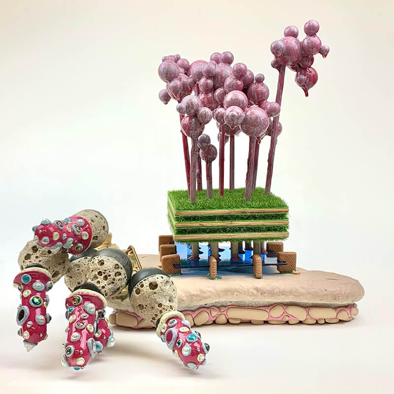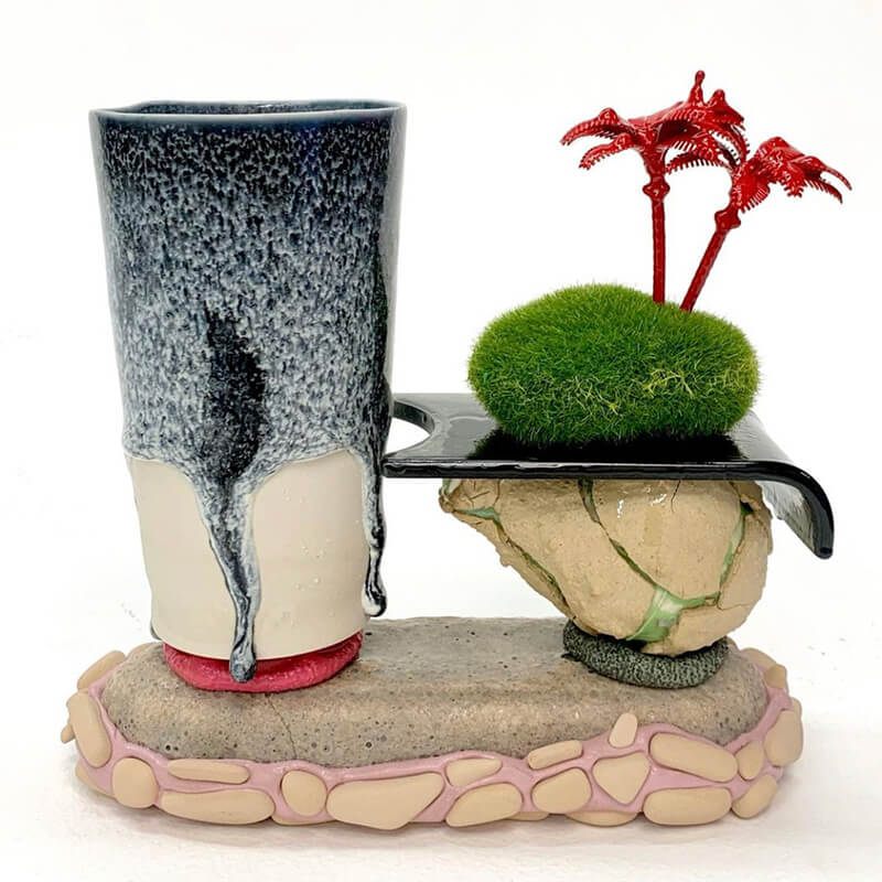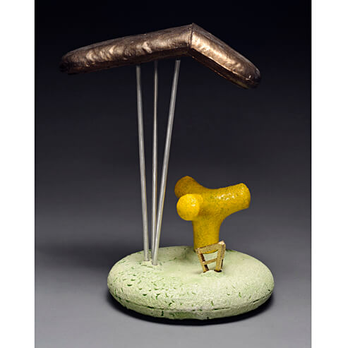 My work focuses on the creation of illusory acts of tension within a forced fusion between what is seemingly organic in form/behavior and what is clearly machined. The Organic, epitomized by my use of rough surfaces and plant-like shapes, is determined by Nature-in various states of decay. The Machined, as suggested by the clean lines of the slip-cast objects, is fabricated by the rules of Man-products of our intent.