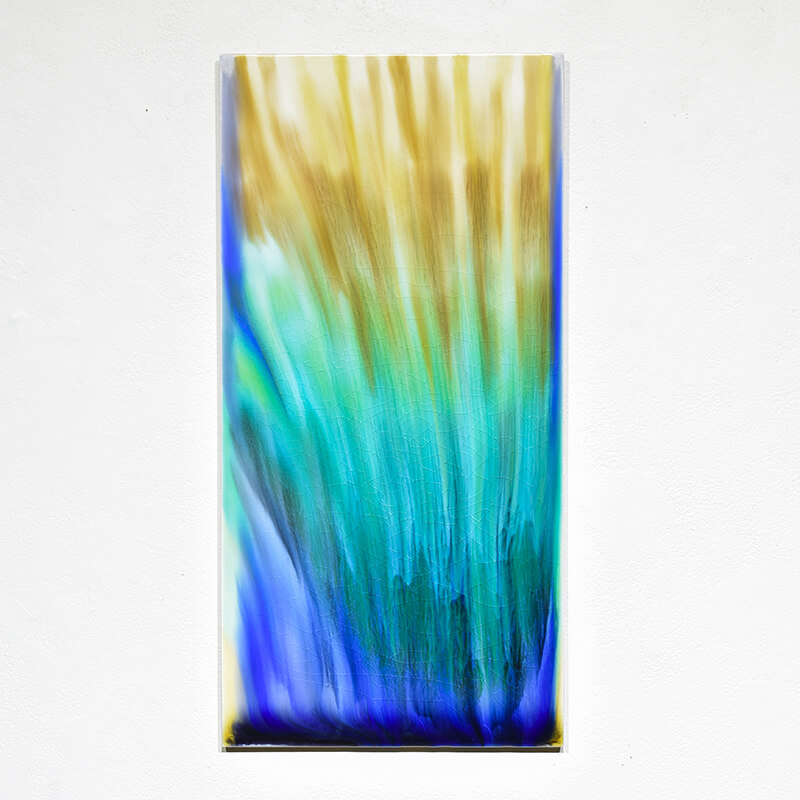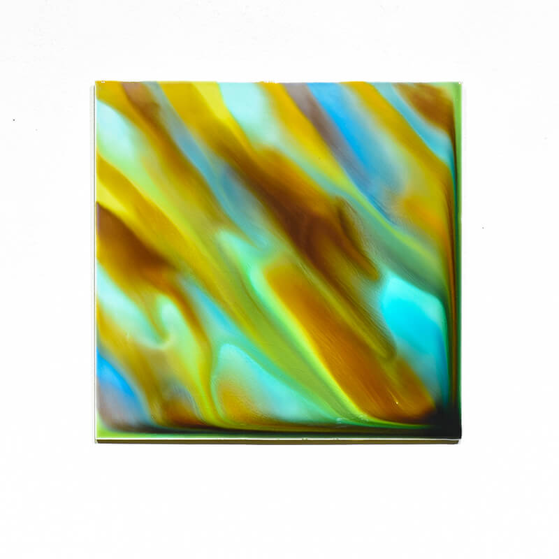 My ceramic tiles are inspired by the natural elegance of Iceland’s volcanic rivers and the sophisticated glazing techniques of Kutani pottery—particularly the methods of Tokuda Yasokichi IV’s, whose approach involves overfiring glaze to blend the colors. My tiles are a canvas that highlight my interest with glaze flow and its interaction with light—how this can reveal/obscure or demonstrate how glaze mirrors essences of nature. This interplay is layered with the emotional impact of color, where subtle gradations, cracks, and the fluid energy of the glazes blend to create a visual dichotomy. Like my vessels, a pattern seems to emerge at a distance, suggesting a uniformity akin to a forest of trees. However, upon closer inspection, each tile reveals a unique, randomized application of colors, challenging the initial perception of consistency. This visual exploration invites the observer to confront the veneer of similarity and discover each tile’s underlying diversity—much like engaging with an individual reveals a depth and uniqueness not apparent in the collective.