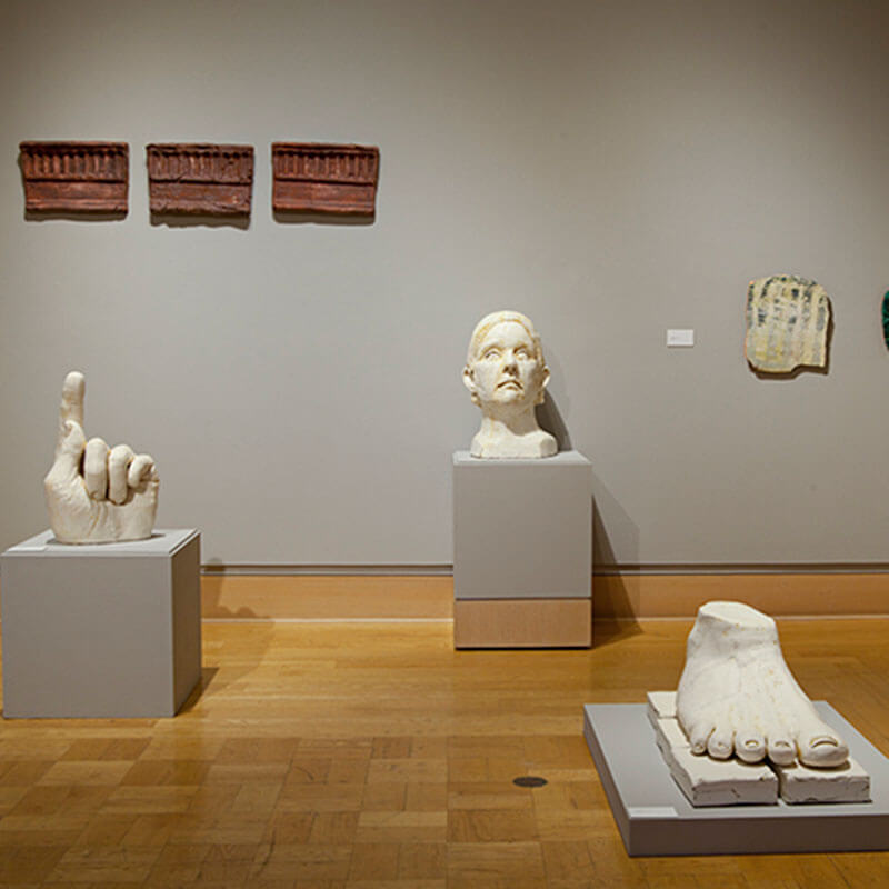 I travelled to Rome in December of 2017 and my most recent work is heavily influenced by my research there. In Rome, time has a strong presence and the evidence of previous ages is obvious. Living with the layers of time raised questions as to what we choose to preserve, what we decide to value and the ramifications of these decisions on future generations. There is a need to acknowledge power structures as we frame our personal and cultural histories. The work is also influenced by the experience of observing personality alteration that comes with advanced aging and memory loss. What of our personality remains and what of ourselves is lost is a question that has been fueling my work. The use of ceramics can allow for historical references, the layering of surface information and shifting scale.